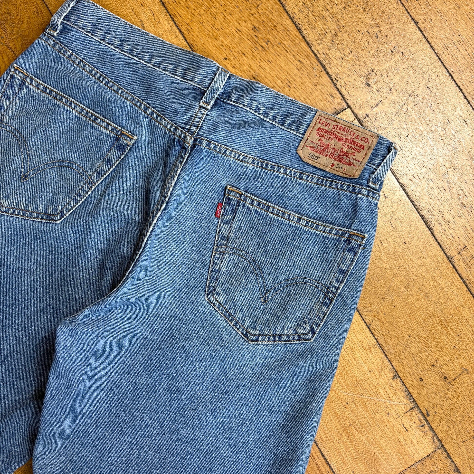 Vintage Levis 550 Baggy Blue Denim Shorts - 34
