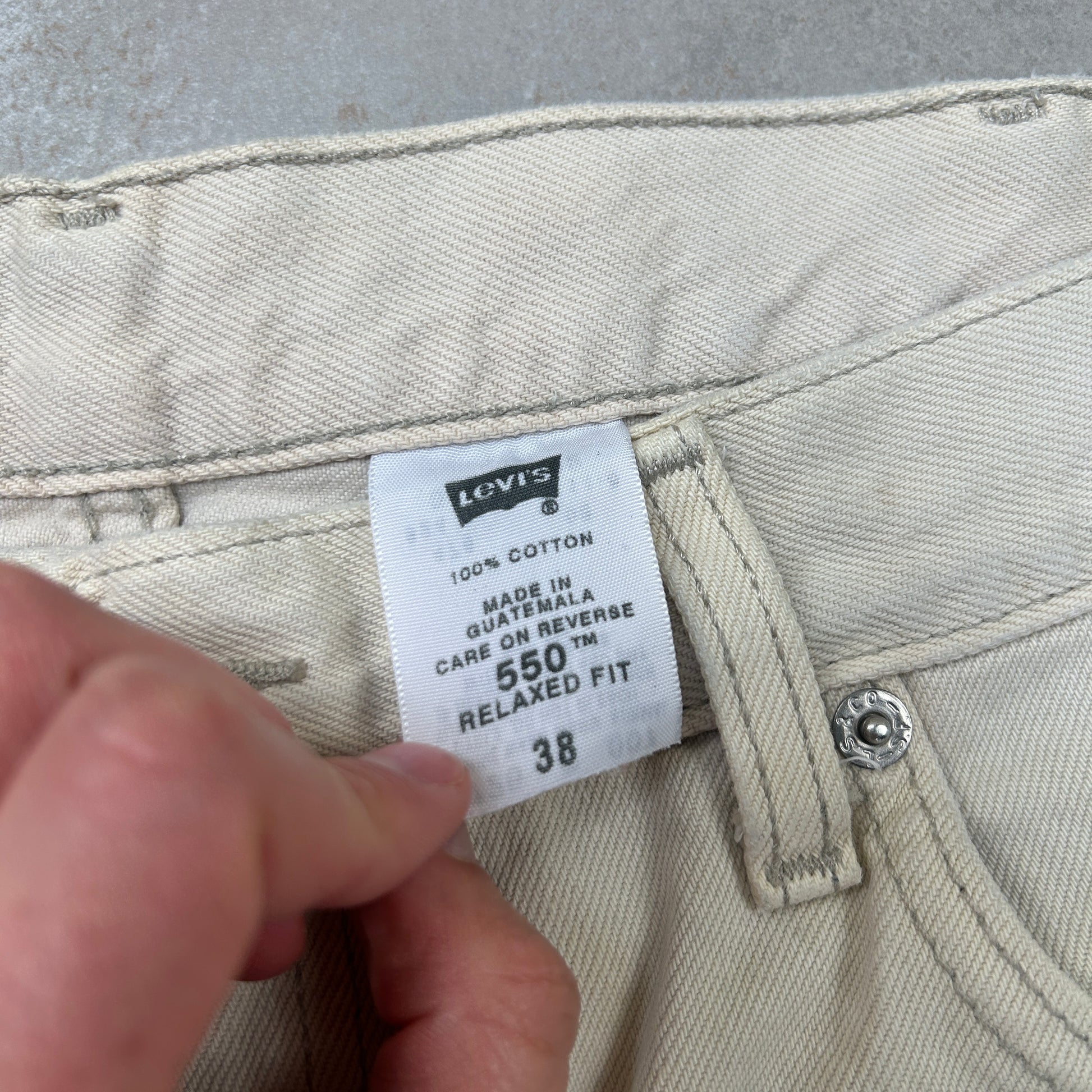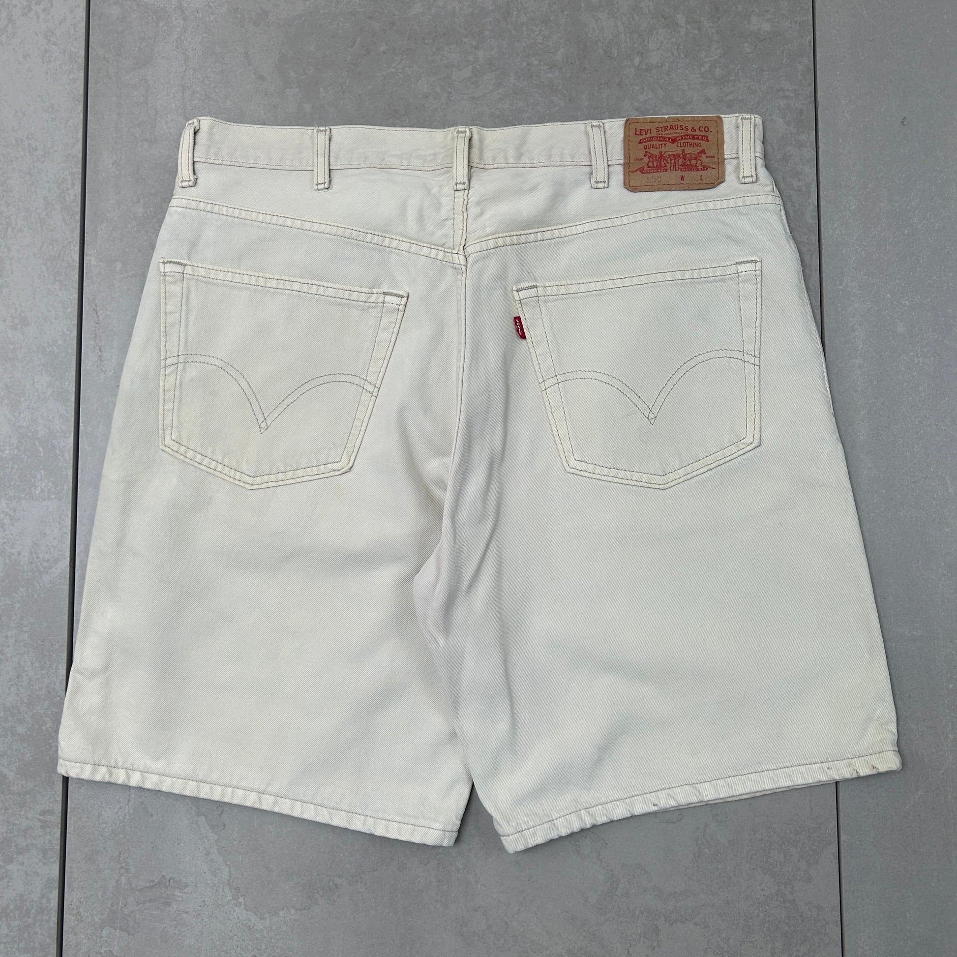 Vintage Levis 550 Baggy Cream Denim Shorts - 38
