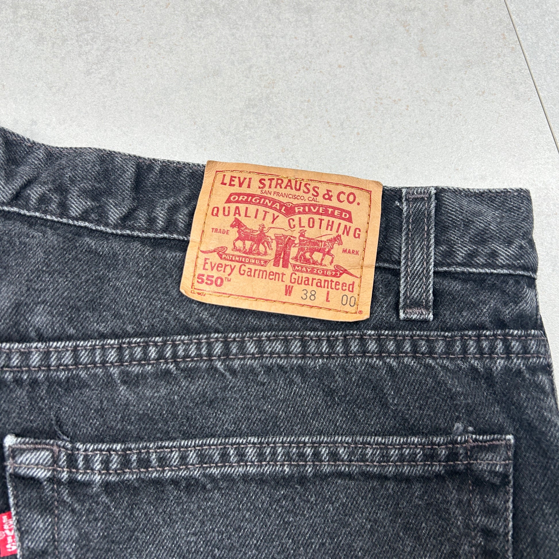 Vintage Levis 550 Baggy Denim Black Shorts - 36