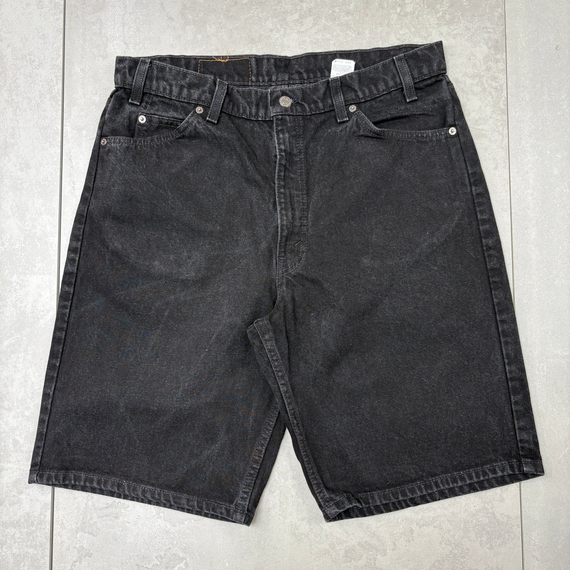 Vintage Levis 550 Orange Tab Black Baggy Denim Shorts - 36