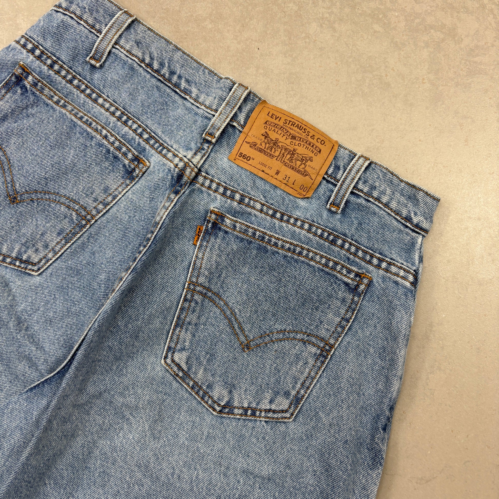 Vintage Levis 560 Orange Tab Blue Baggy Denim Shorts - 31