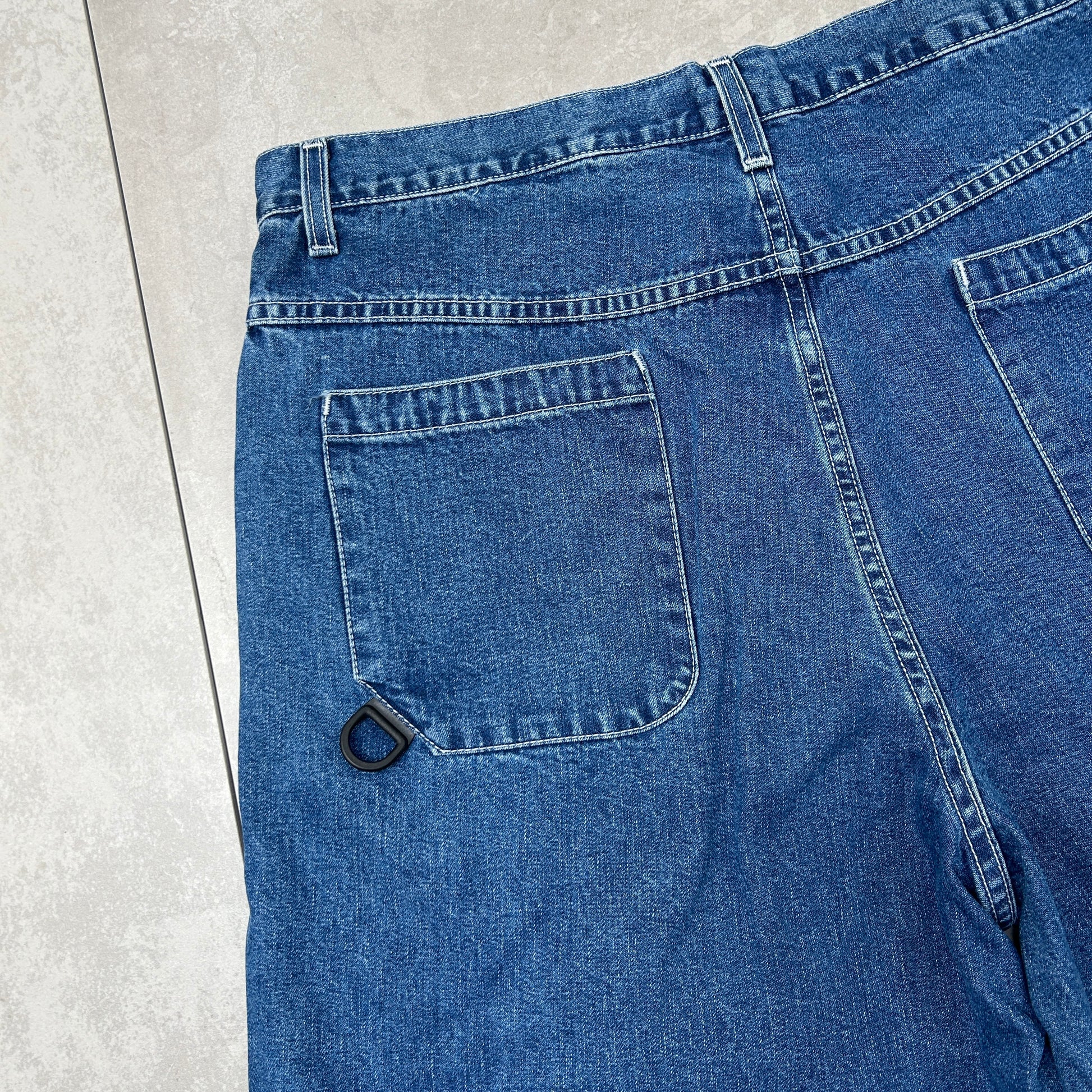 Contrast stitch true religion JNCO Coogi Southpole akademics Fubu skate rocawear embroidered denim jeans jorts skatewear surfwear carpenter cargo japanese denim