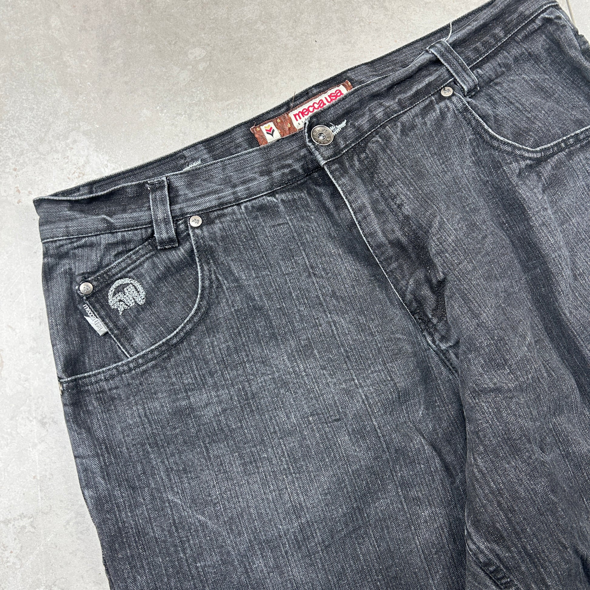 Vintage Mecca Embroidered Hip Hop Black Baggy Jeans - 40