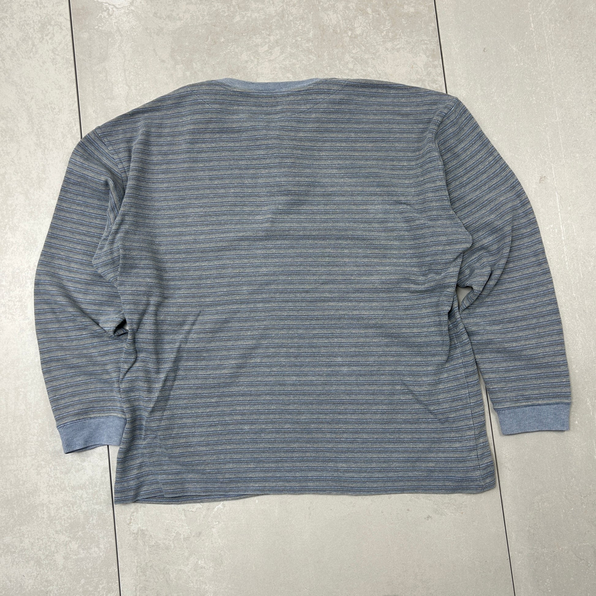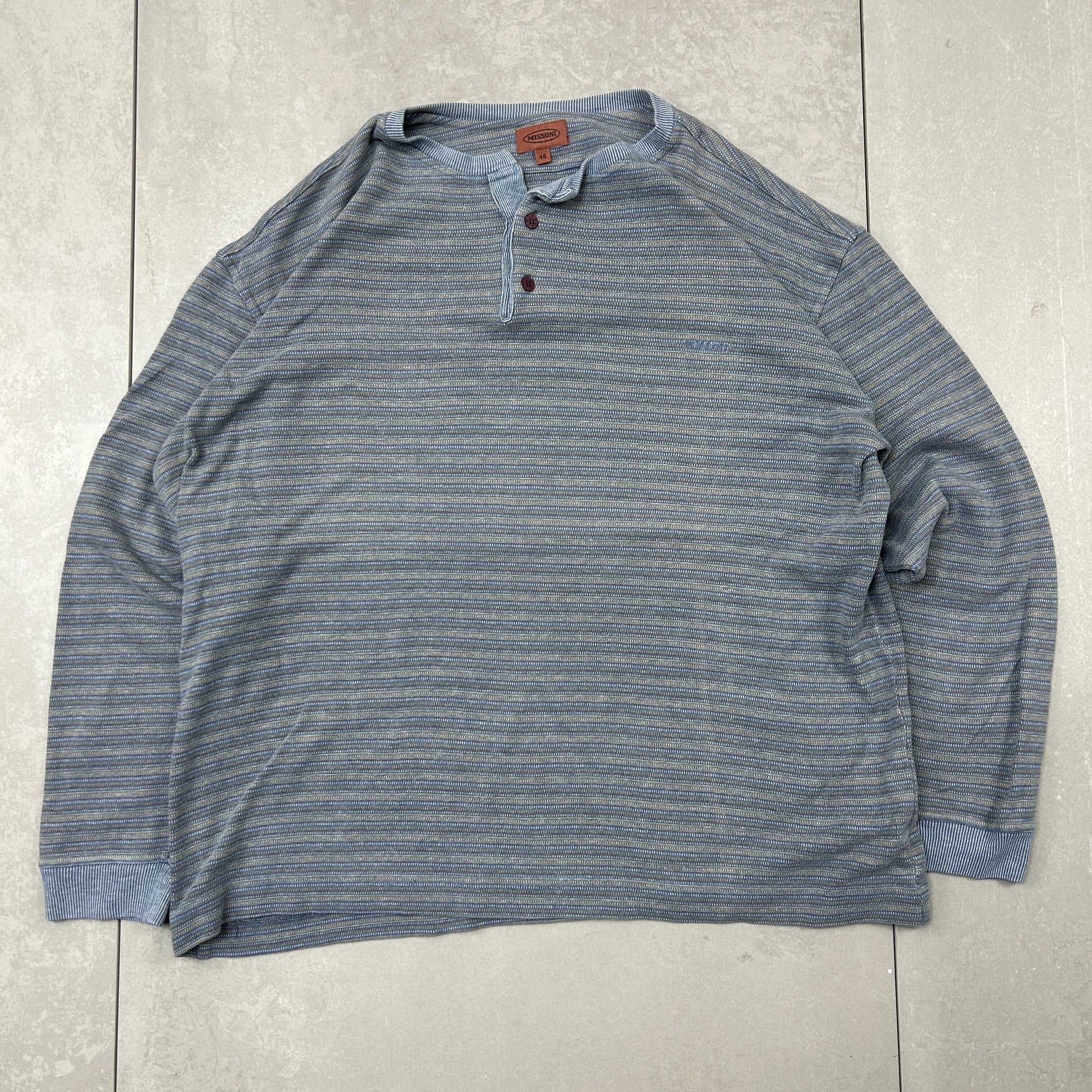 Vintage Missoni Italian Stripe Long Sleeve Blue Henley Boxy T-Shirt - XL