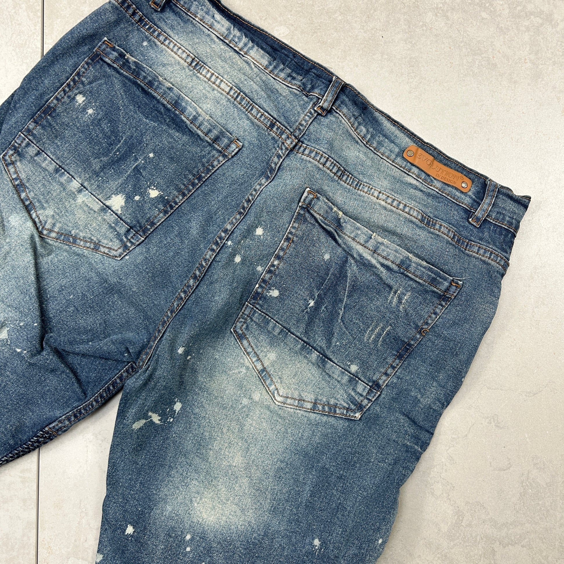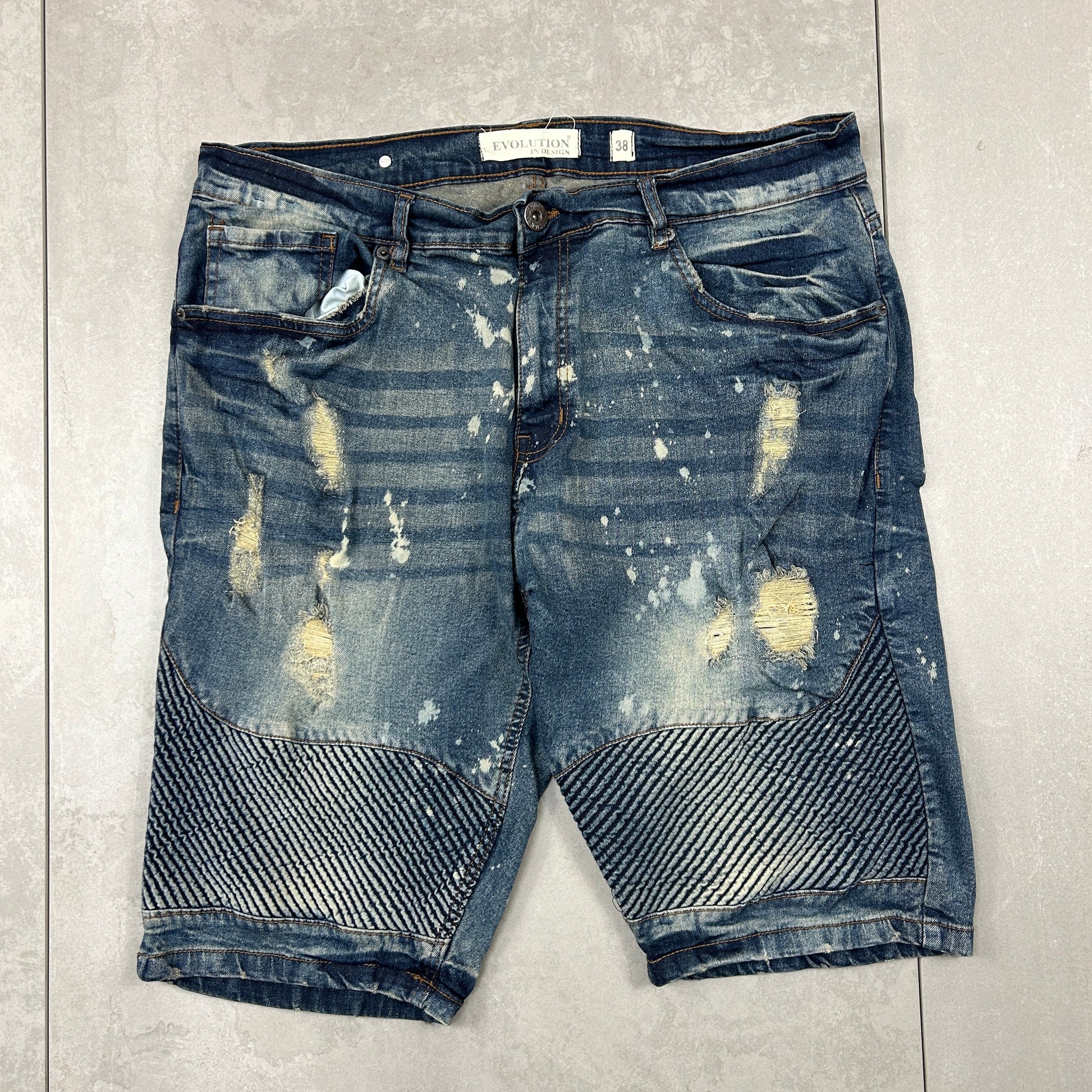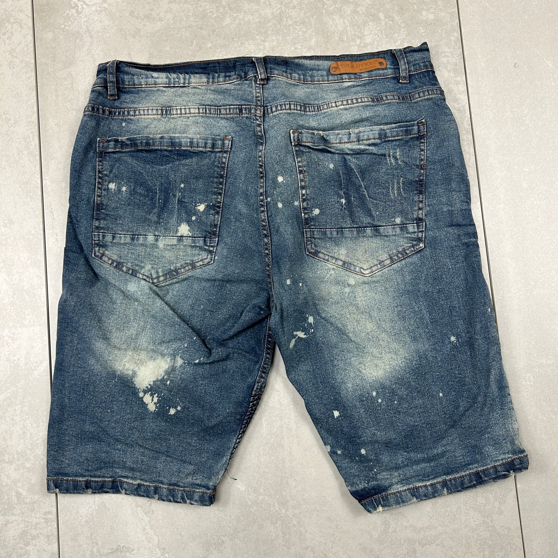 Vintage Moto Embroidered Hip Hop Baggy Blue Shorts Jorts - 36