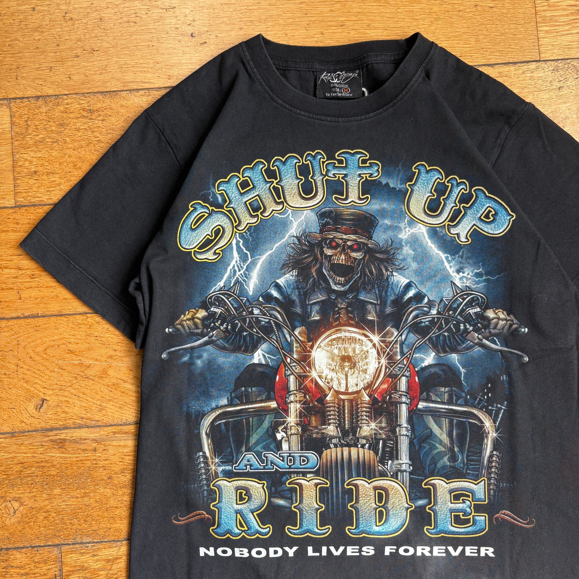 Vintage Motorbike Skeleton Black Graphic T-Shirt - S