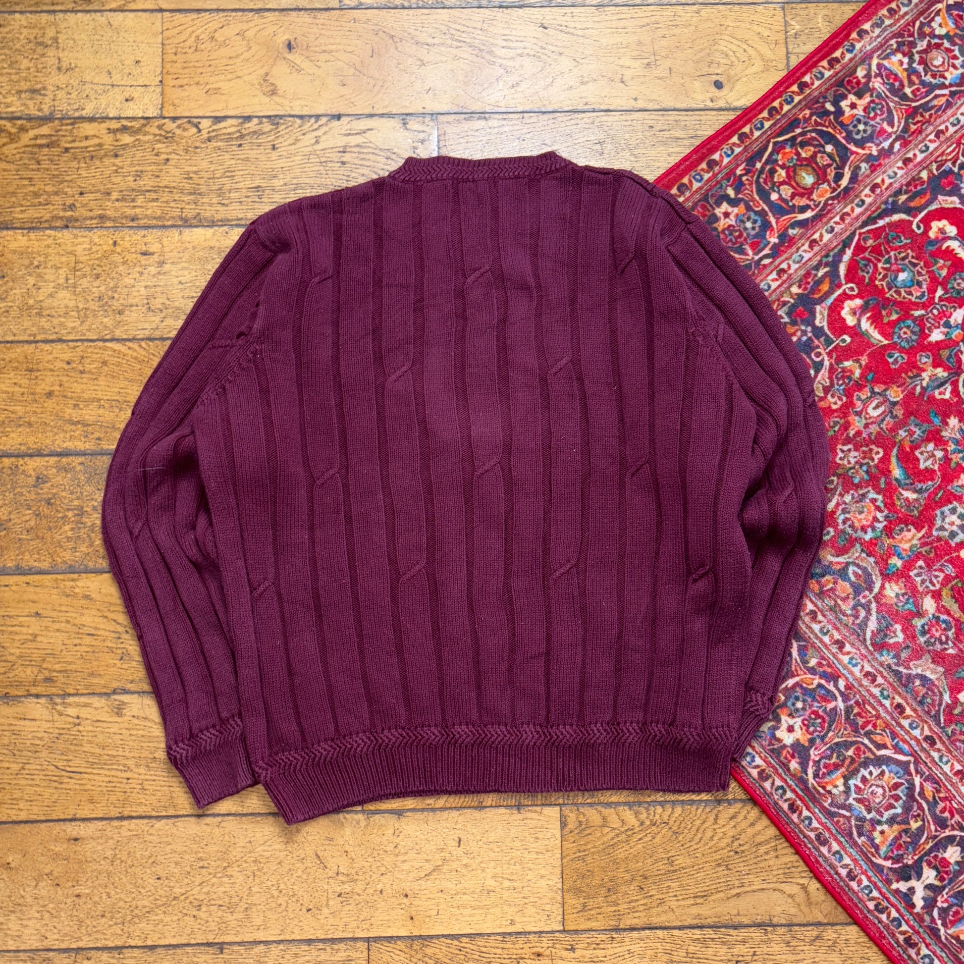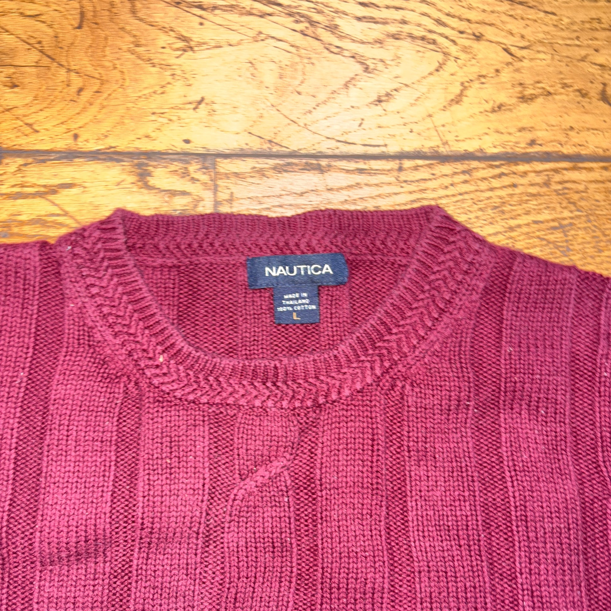 Vintage Nautica Burgundy Cable Embroidered Knit Jumper - XL