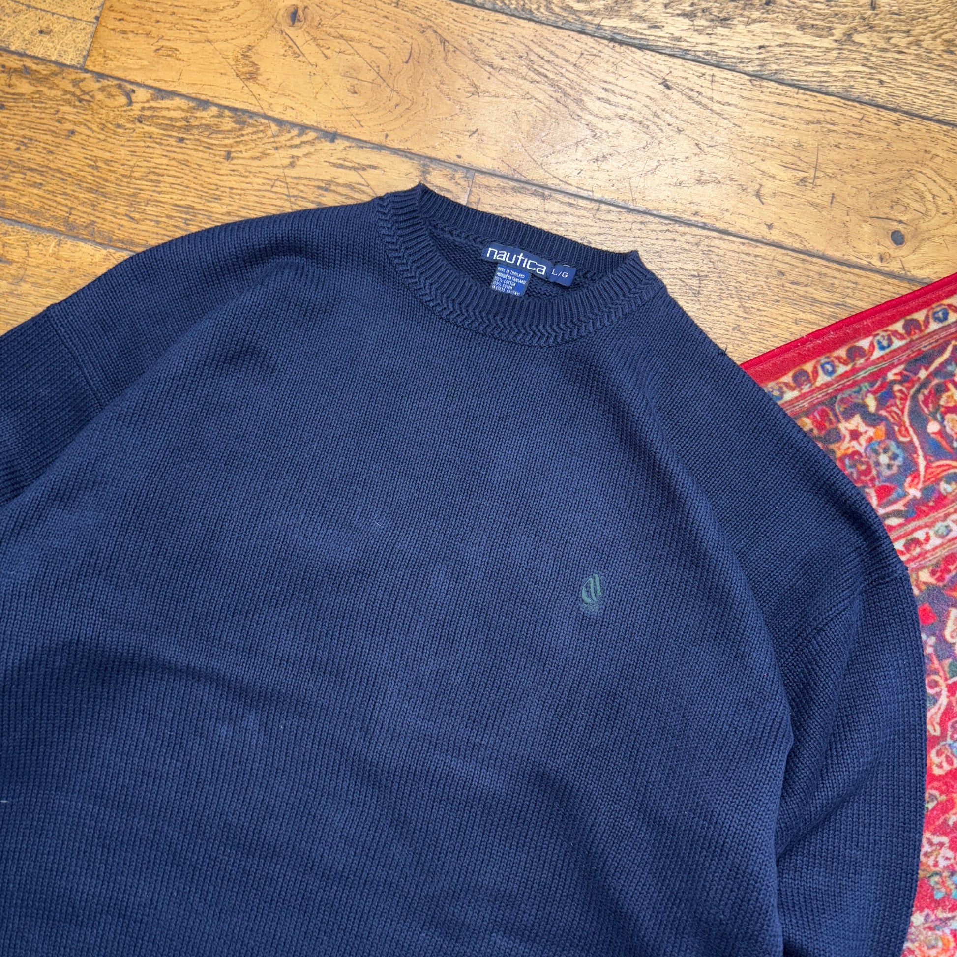 Vintage Nautica Navy Embroidered Knit Jumper - XL