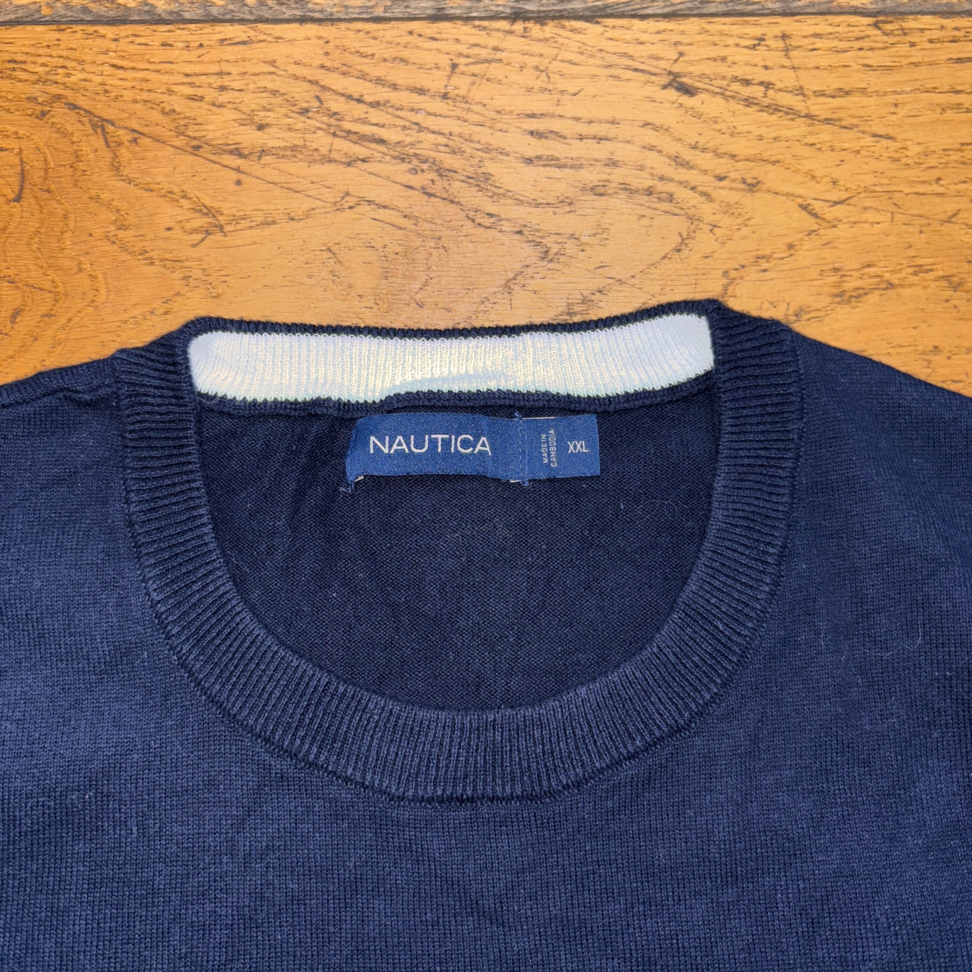 Vintage Nautica Navy Grey Stripe Embroidered Knit Jumper - 2XL