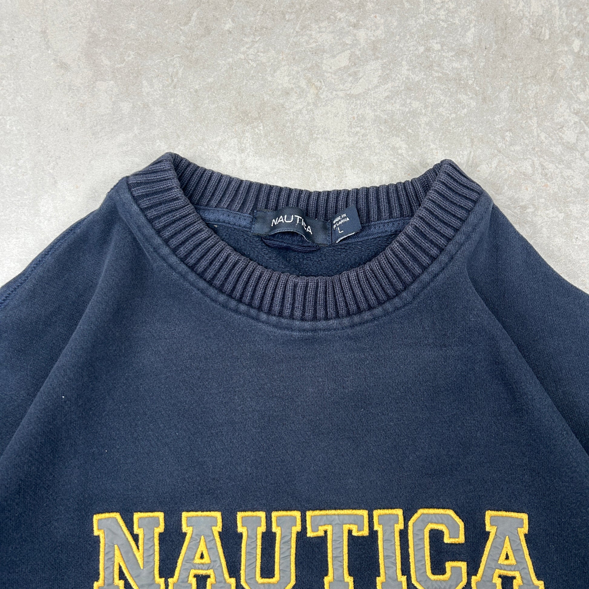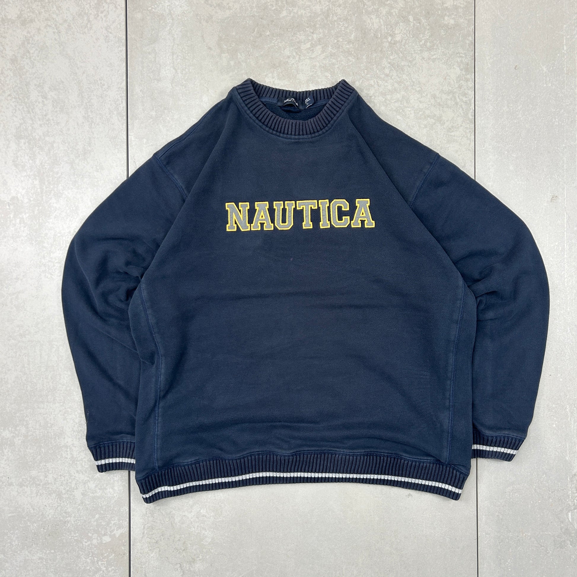 Vintage Nautica Spellout Navy Embroidered Sweatshirt - L