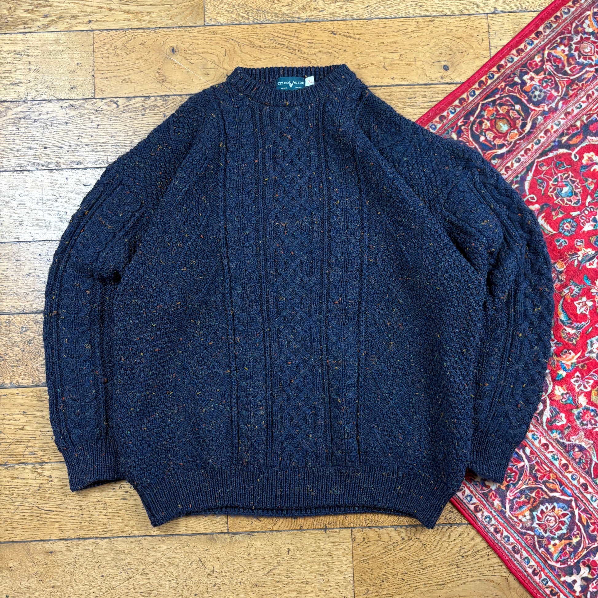 Vintage Navy Chunky Cable Arran Wool Knit Jumper - XL