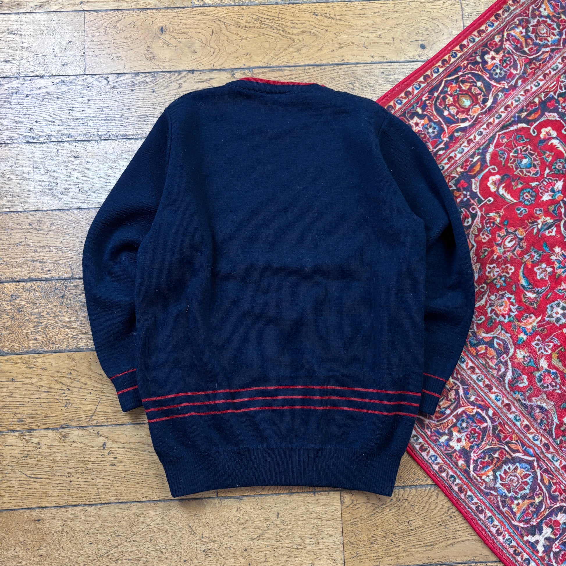 Vintage Navy Embroidered Tennis Chunky Knit Jumper - S