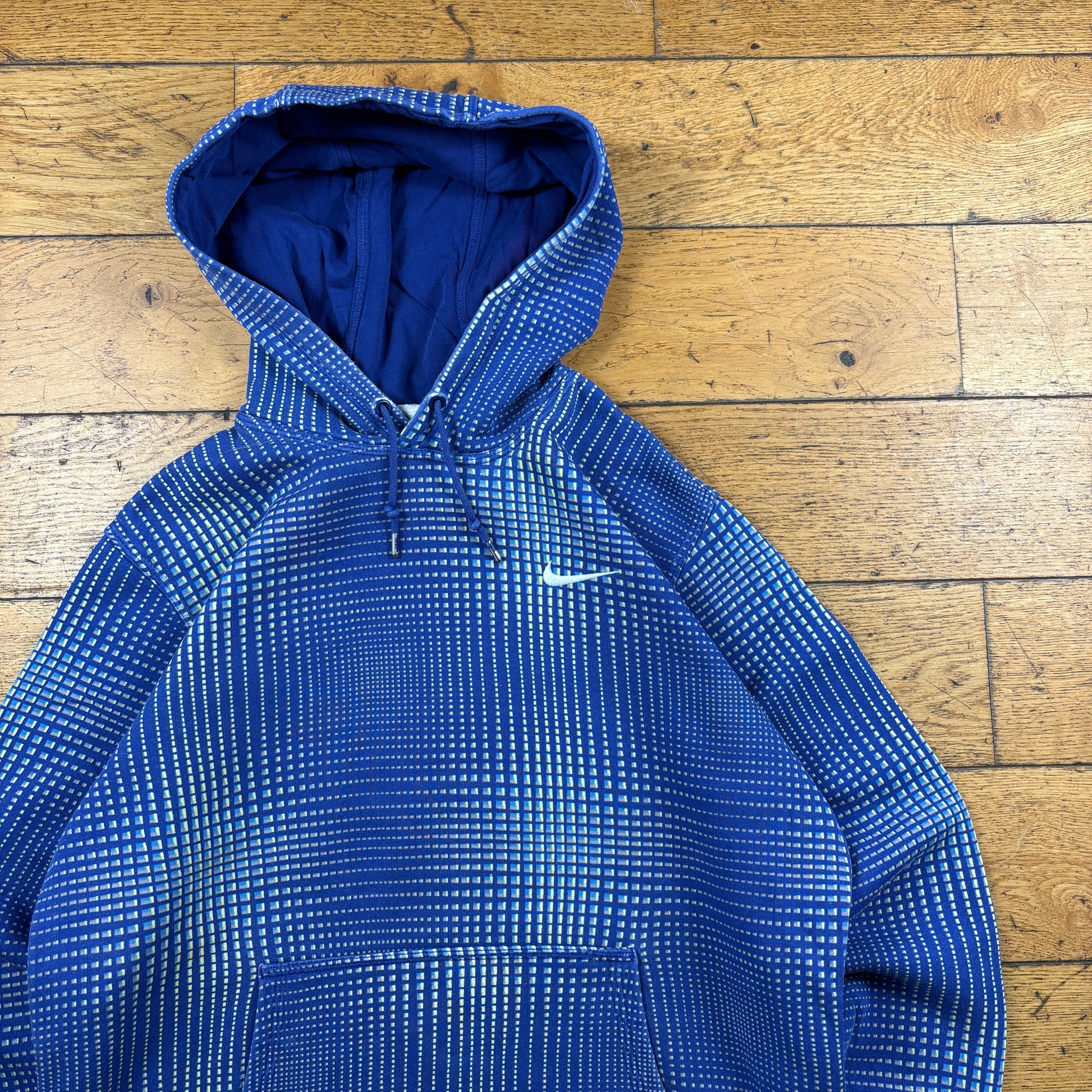 Vintage Nike Blue Abstract Dot Pattern Embroidered Hoodie Sweatshirt - M