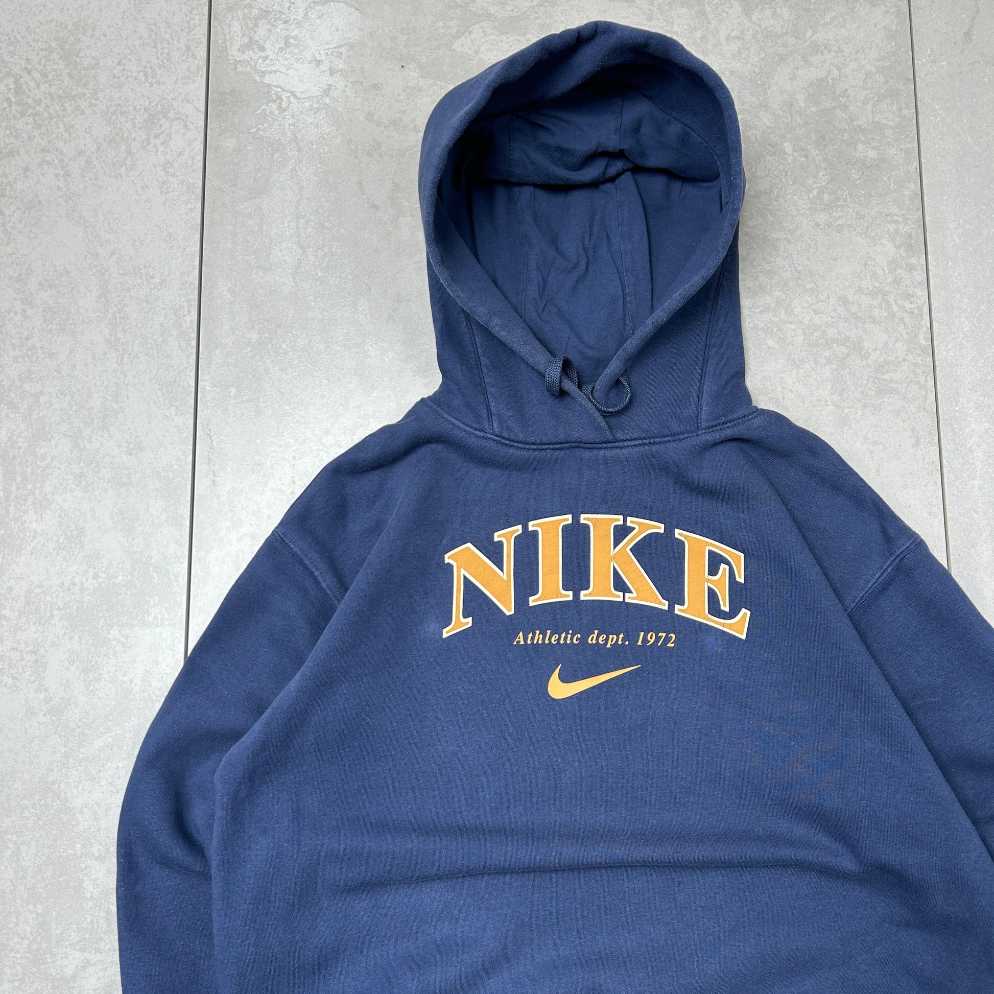 Vintage Nike Navy Spellout Hoodie Sweatshirt - S