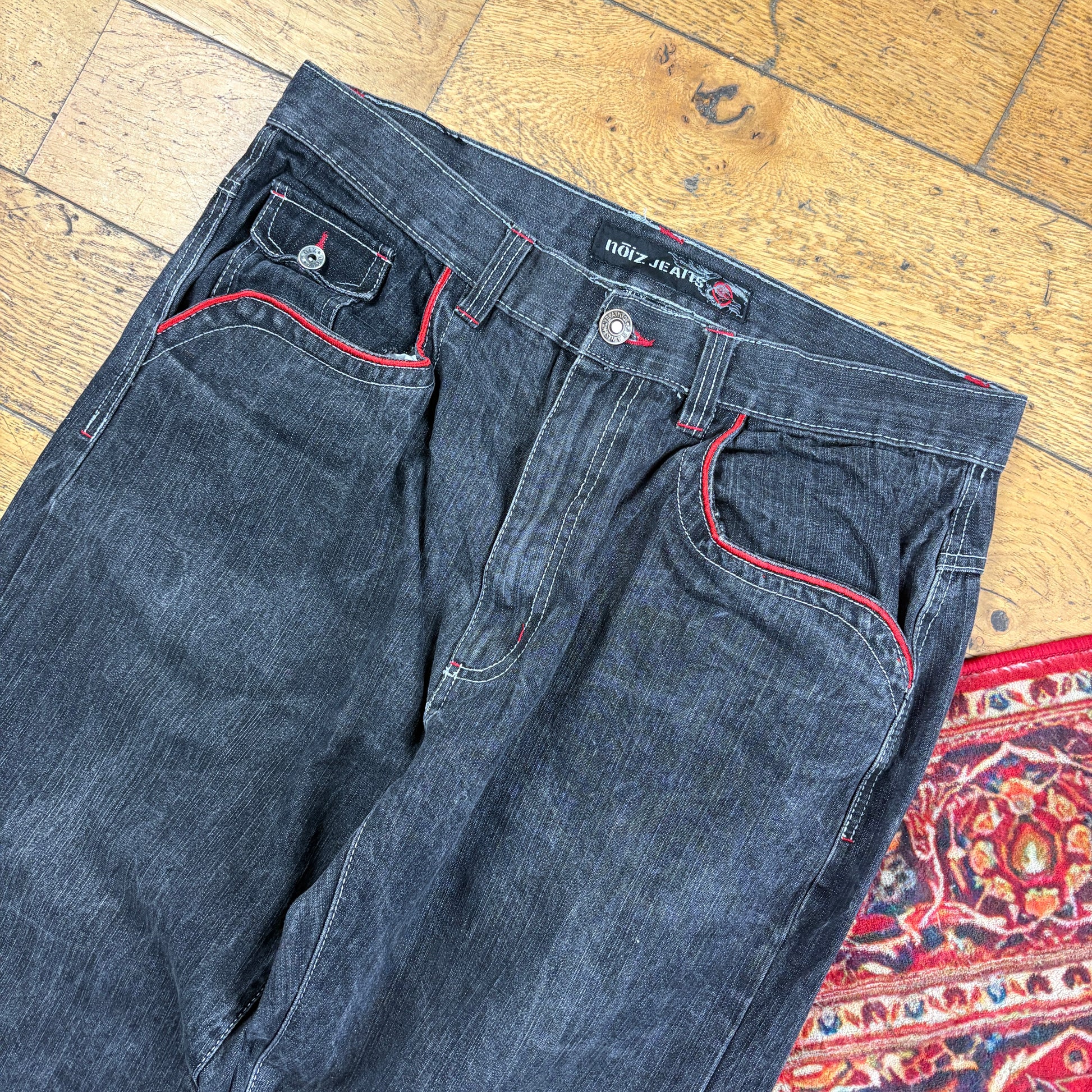 Vintage Noiz Jeans Black Embroidered Y2K Hip Hop Baggy Jeans - 36
