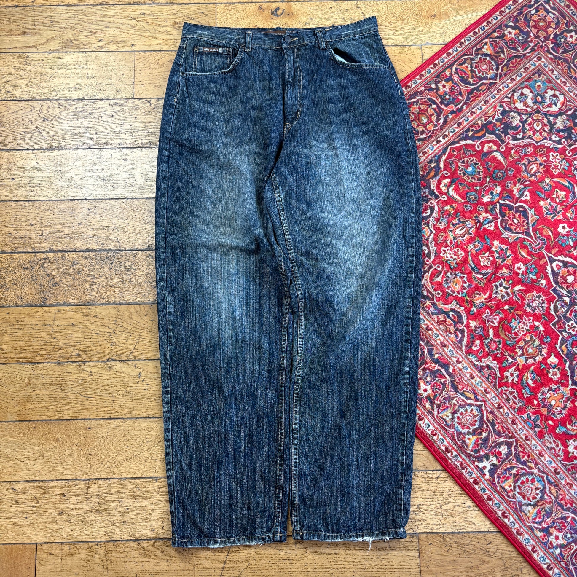 Contrast stitch true religion JNCO Coogi Southpole akademics Fubu skate rocawear embroidered denim jeans japanese denim y2k skatewear surfwear
