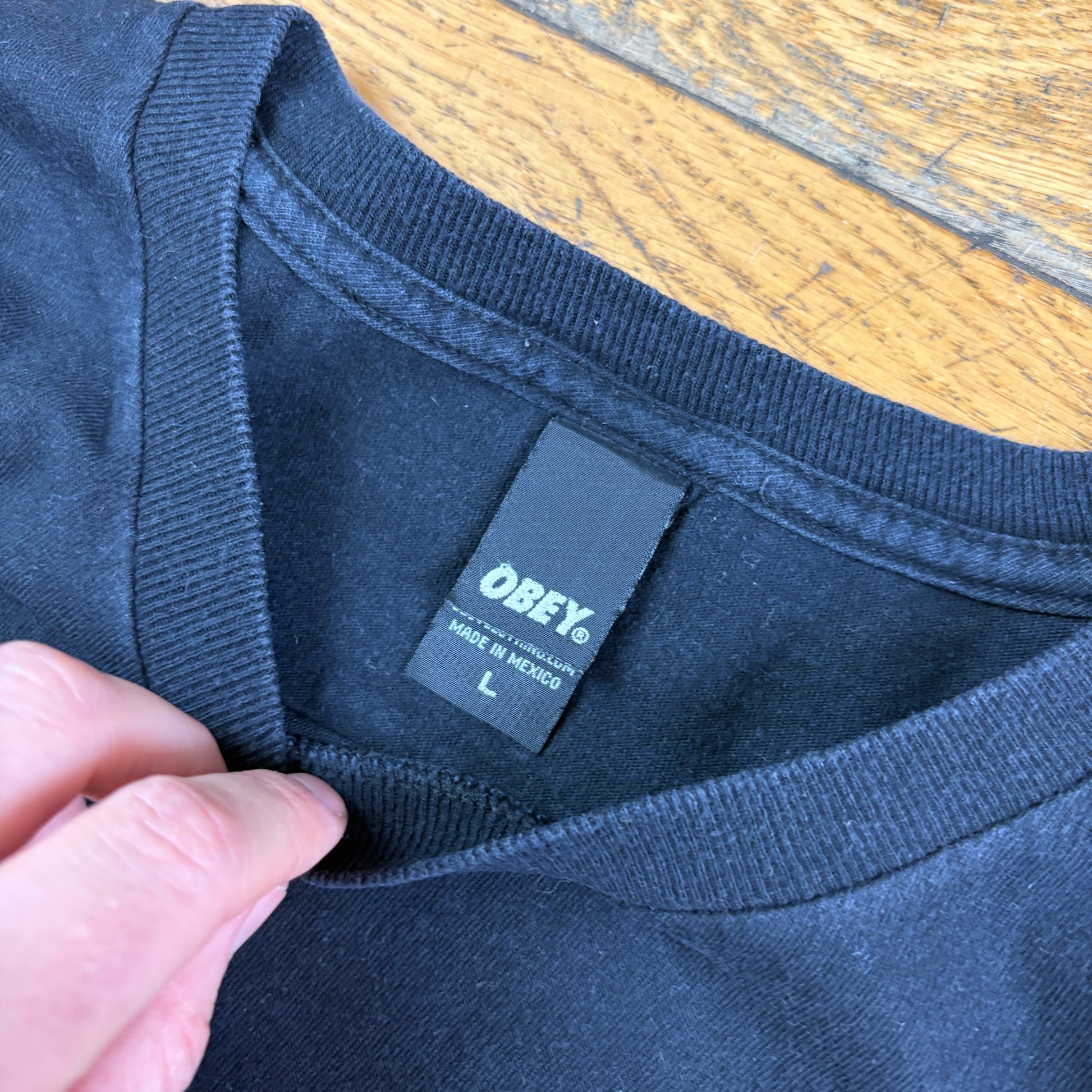 Vintage Obey Black Skate Graphic T-Shirt - M
