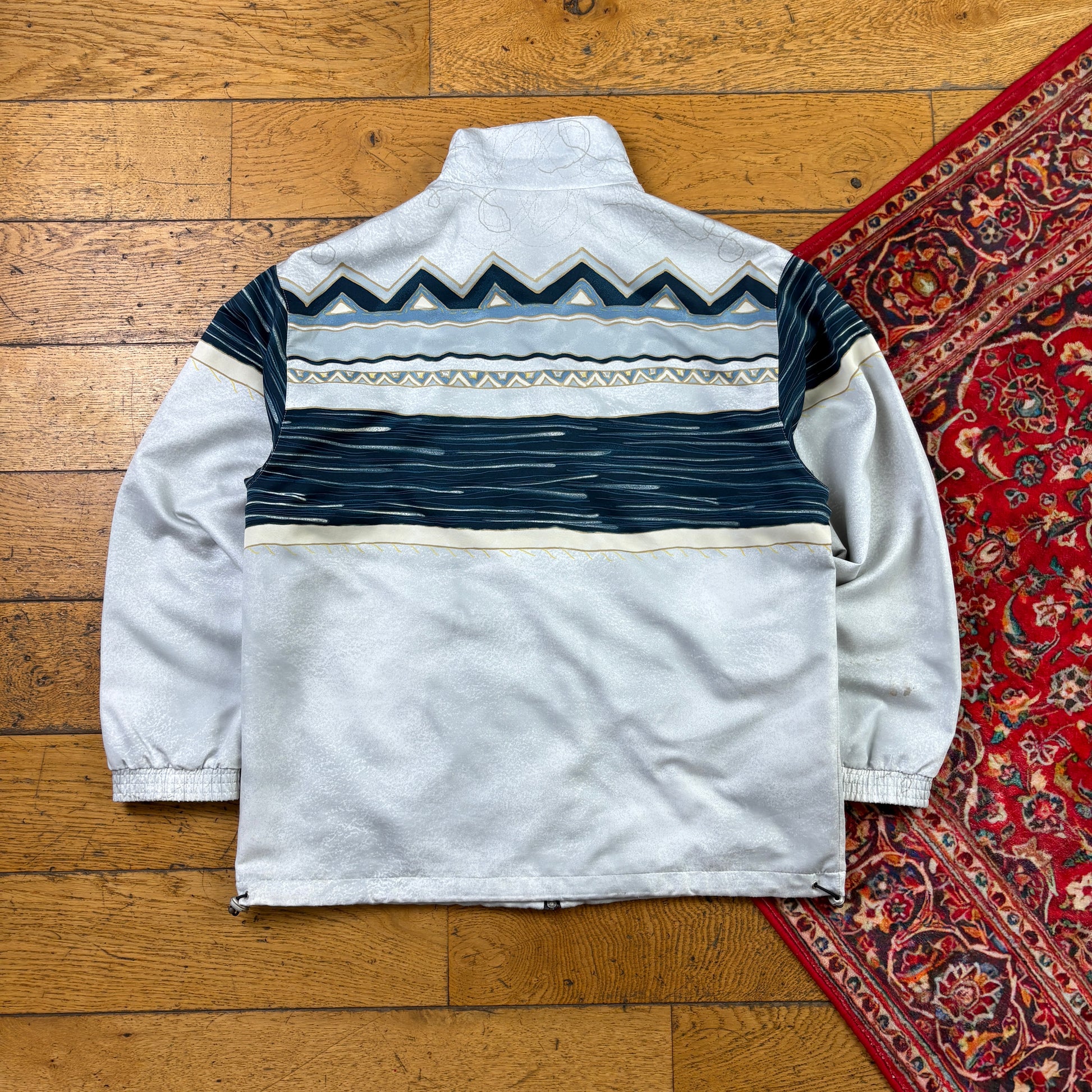 Vintage Pattern White Tracksuit Track Shell Windbreaker Jacket - M