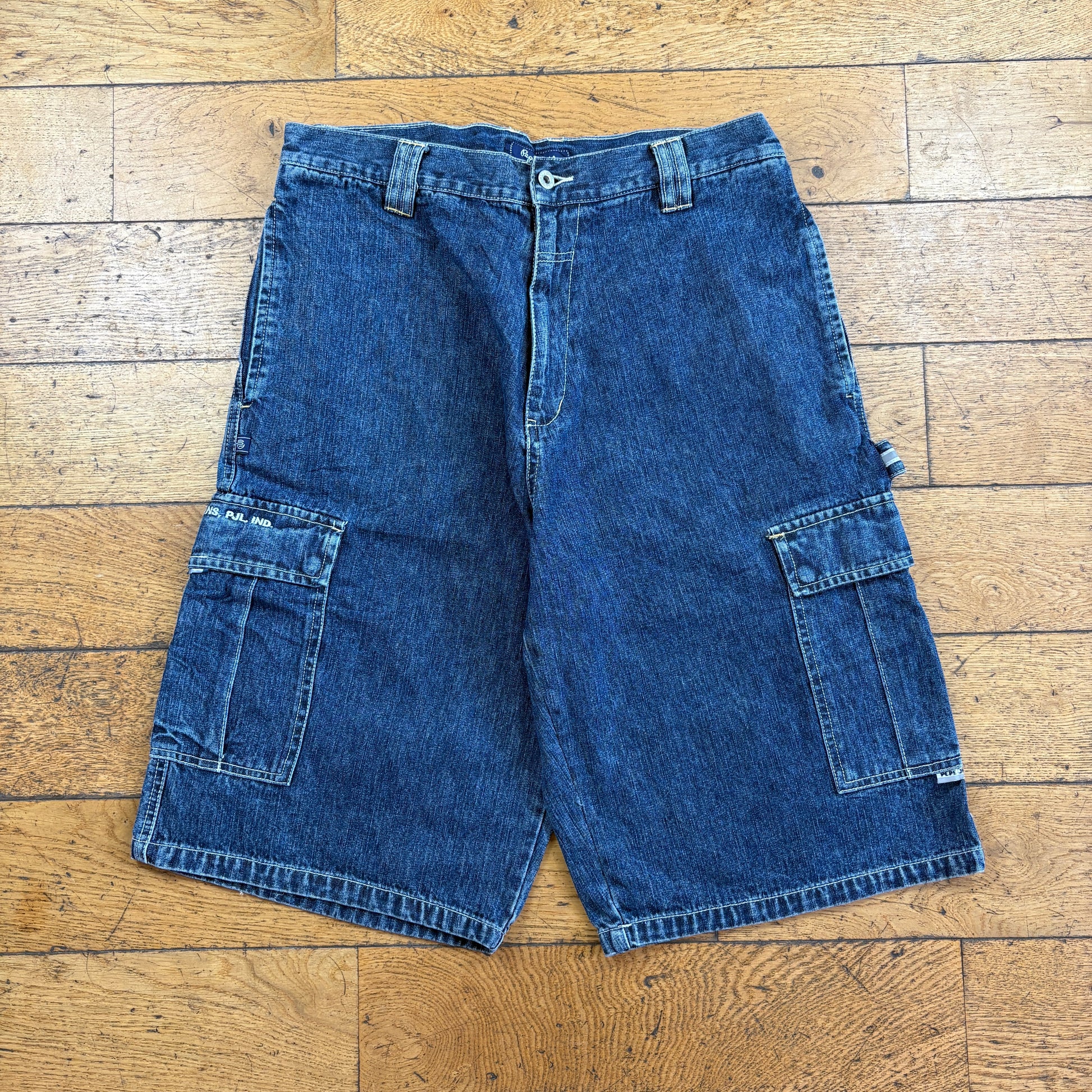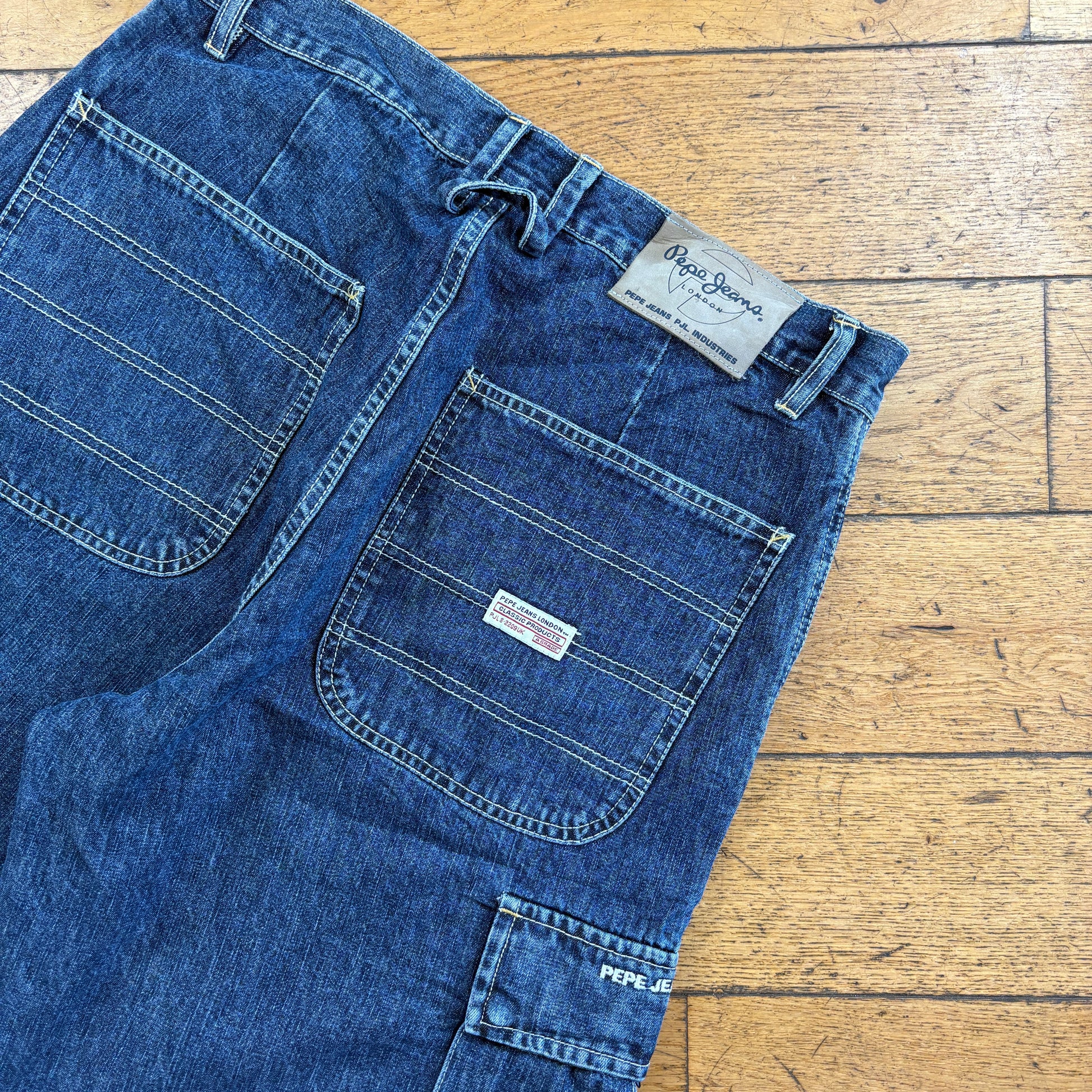 Vintage Pepe Jeans Cargo Embroidered Blue Hip Hop Baggy Shorts Jorts - 34