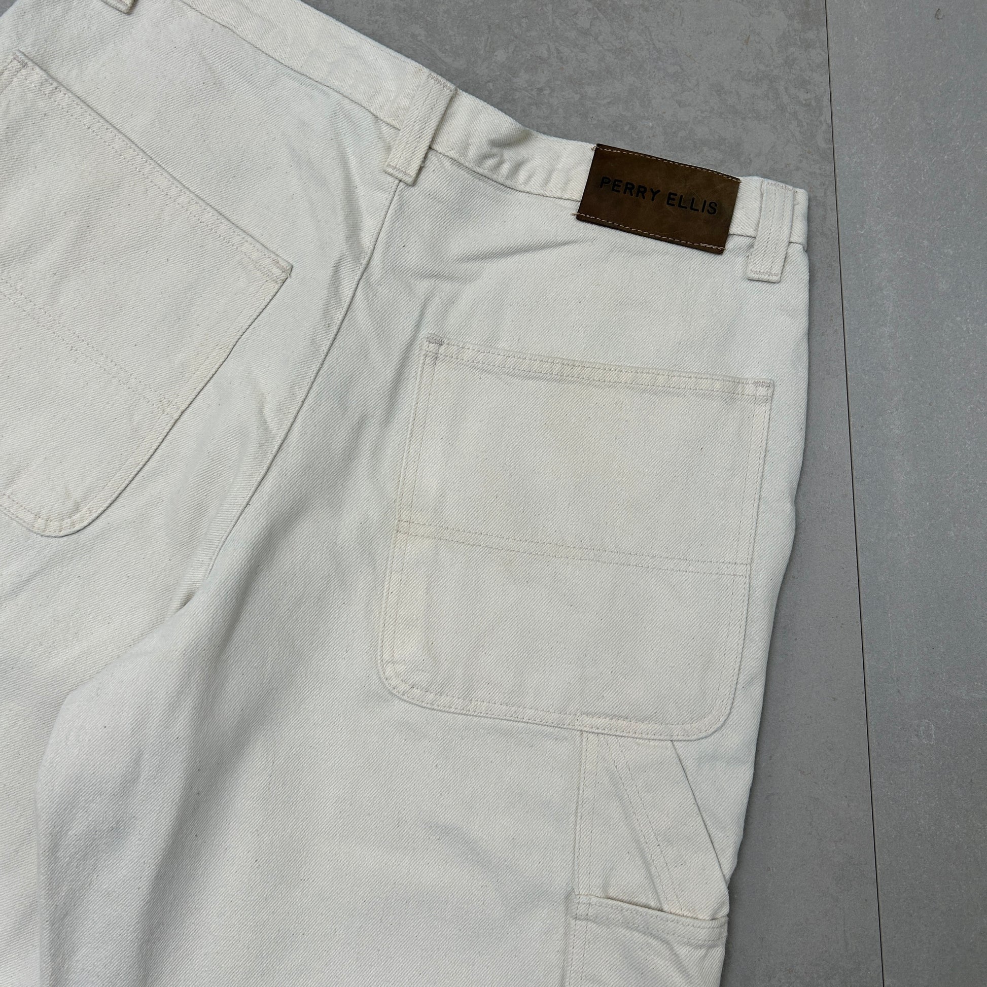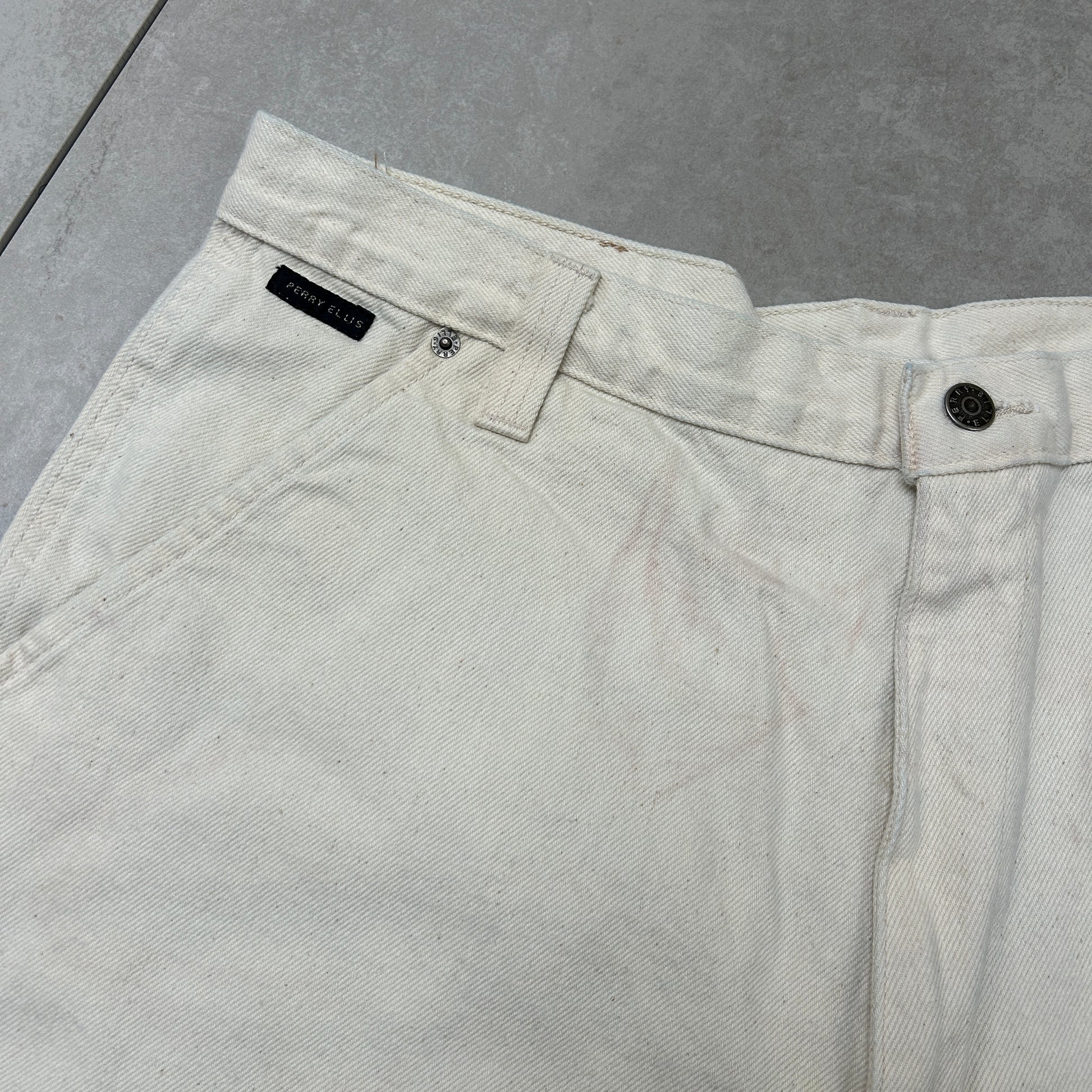 Vintage Perry Ellis Cream Hip Hop Baggy Shorts Jorts - 38