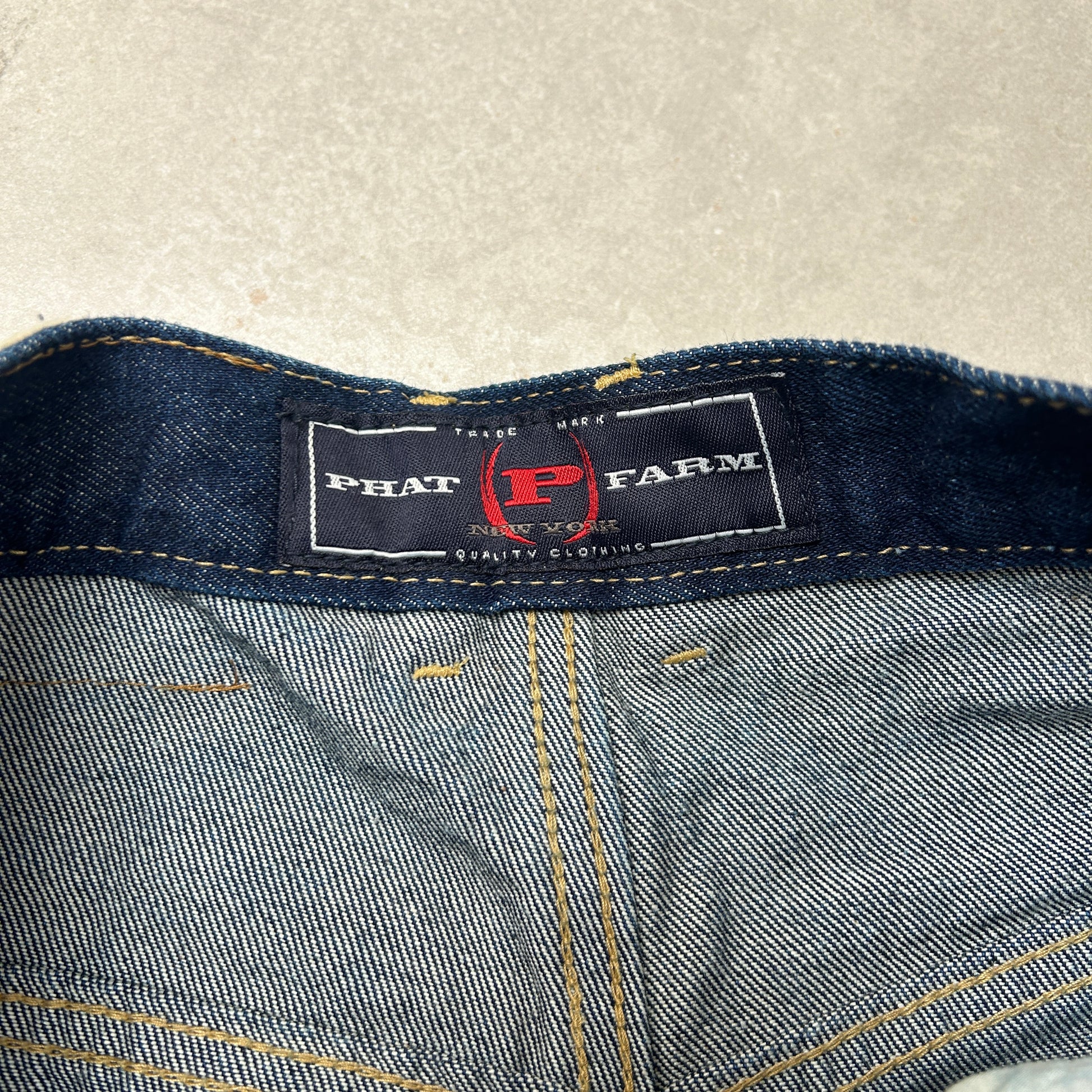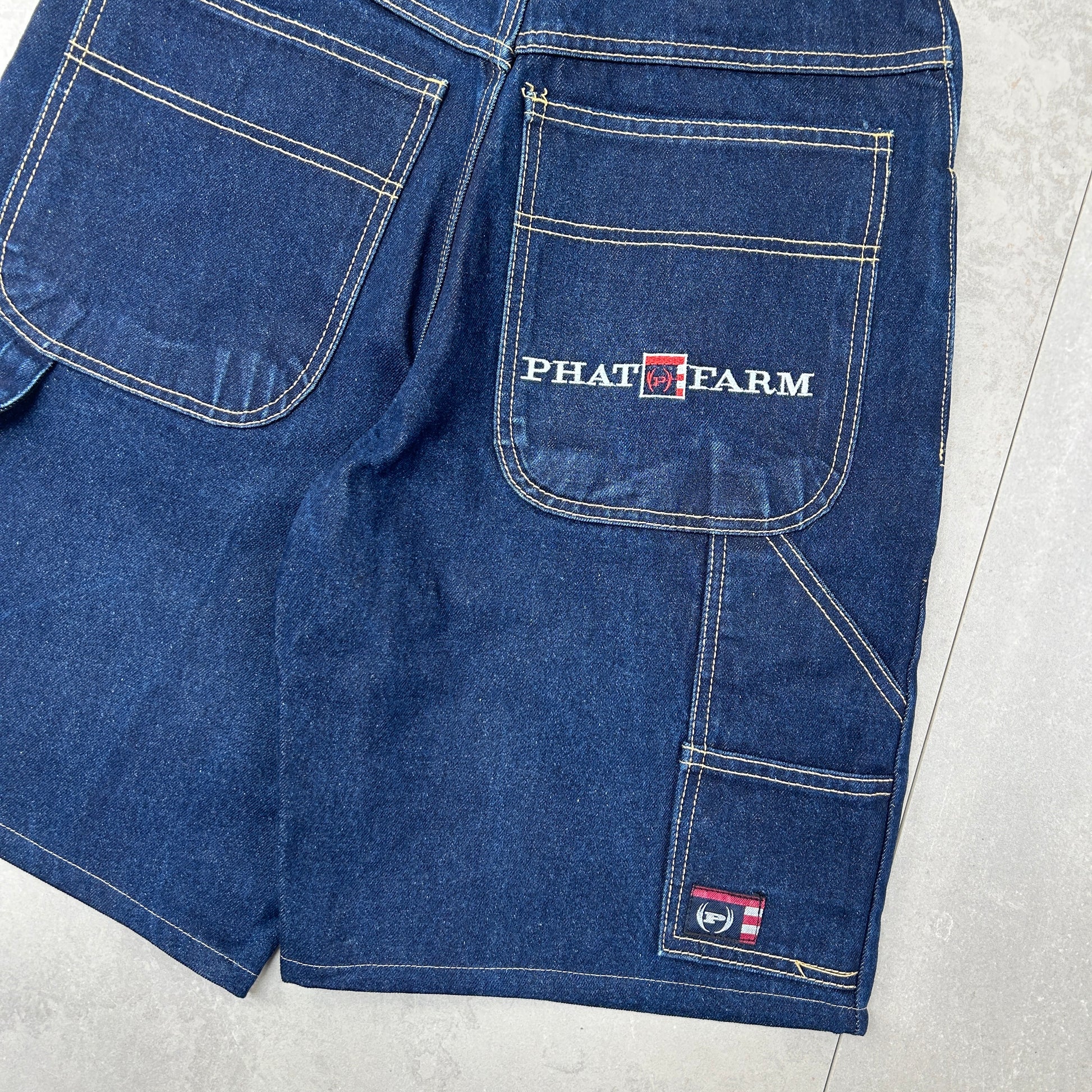 Vintage Phat Farm Embroidered Hip Hop Baggy Blue Shorts Jorts - 30