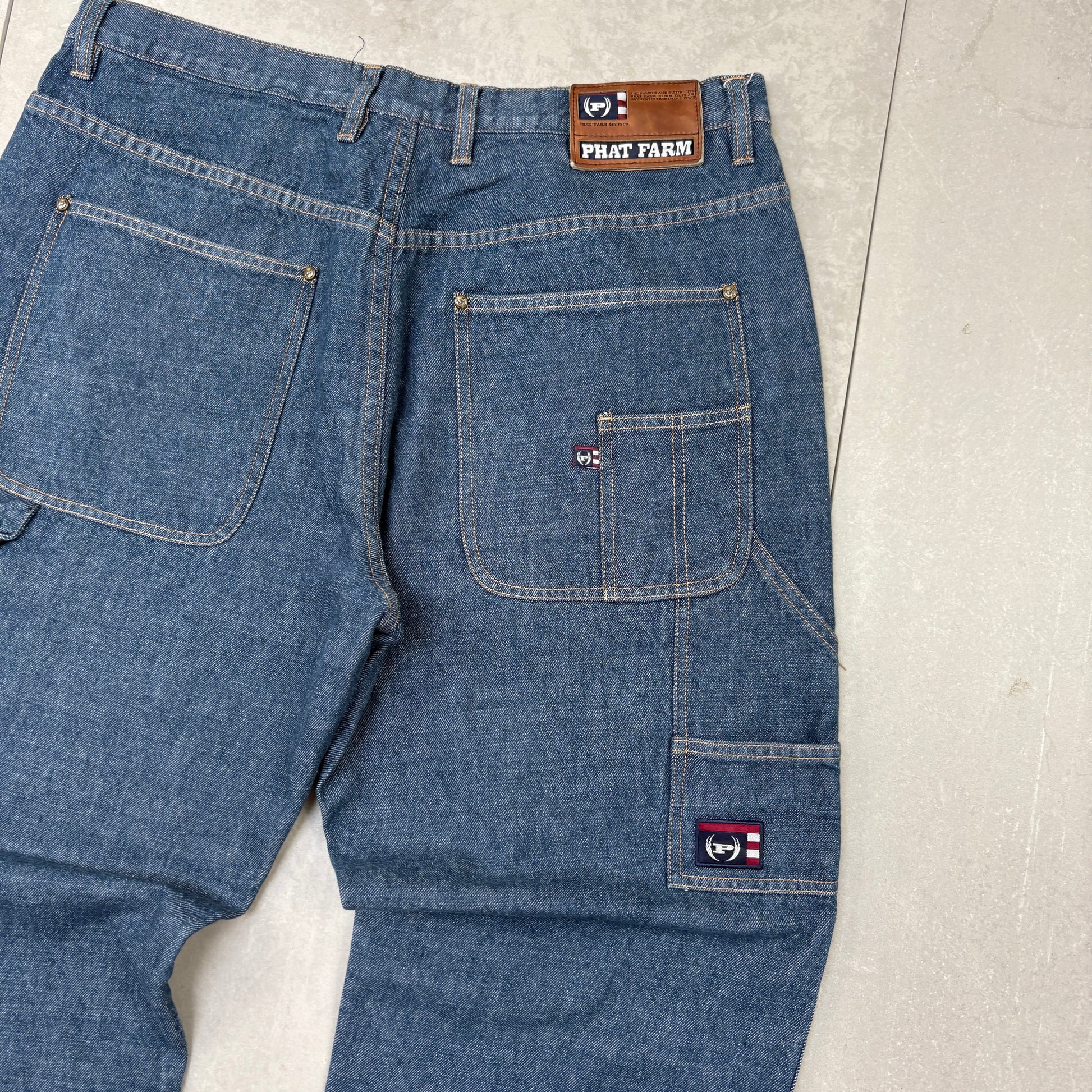 Vintage Phat Farm Embroidered Hip Hop Blue Baggy Jeans - 38