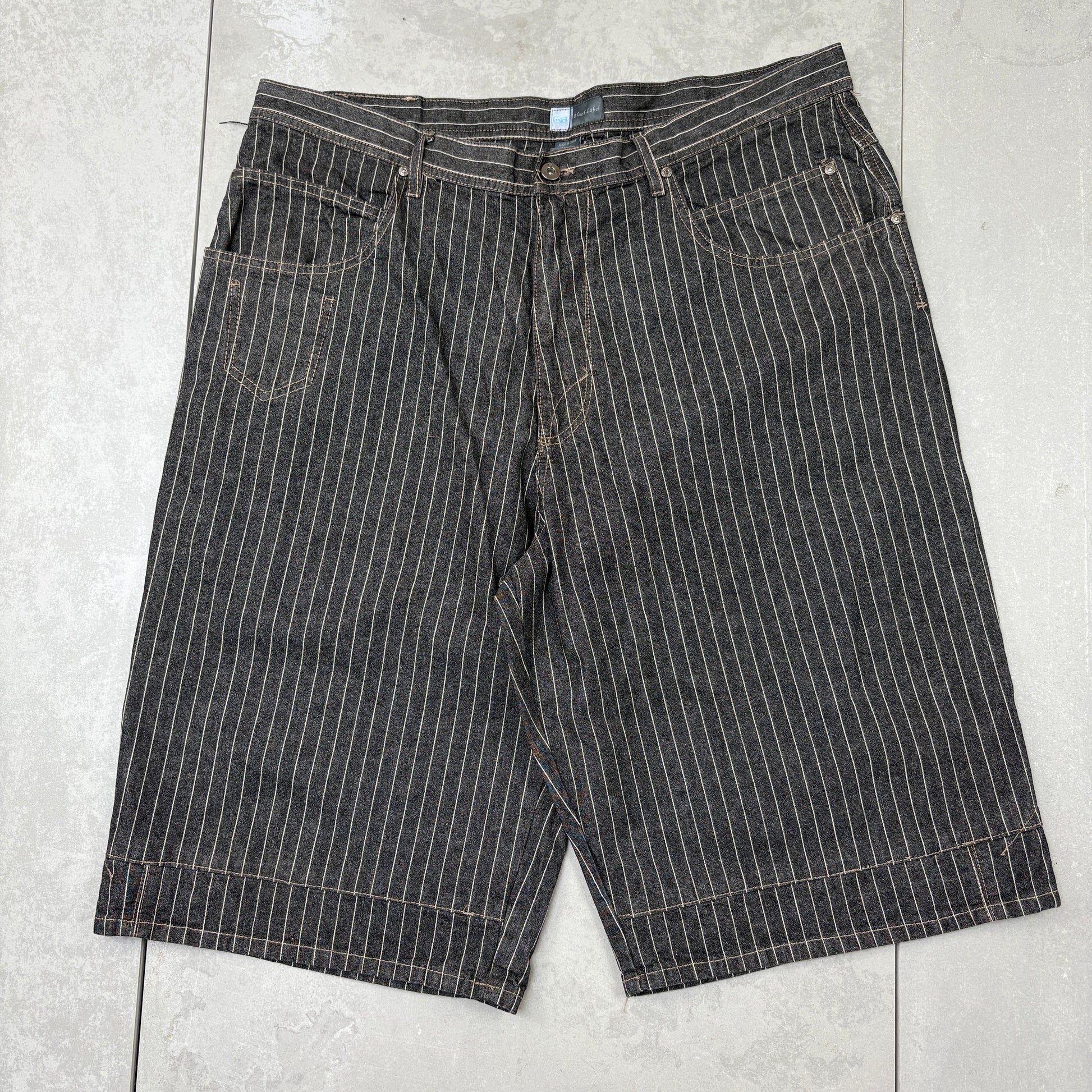 Vintage Pin Stripe Hip Hop Baggy Black Shorts Jorts - 40