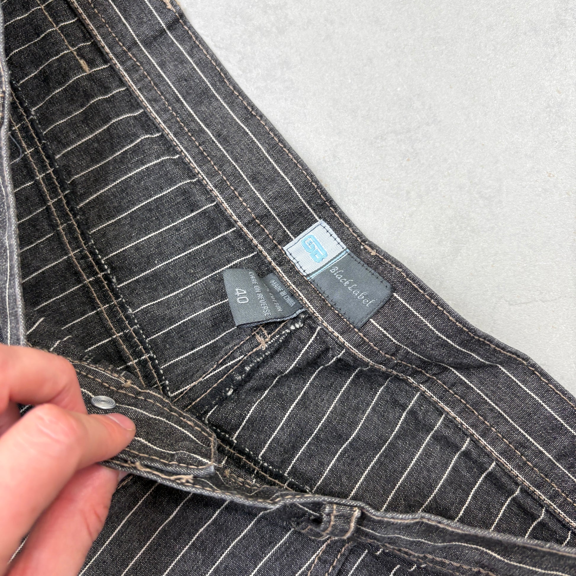 Contrast stitch true religion JNCO Coogi Southpole akademics Fubu skate rocawear embroidered denim jeans jorts skatewear surfwear carpenter cargo japanese denim