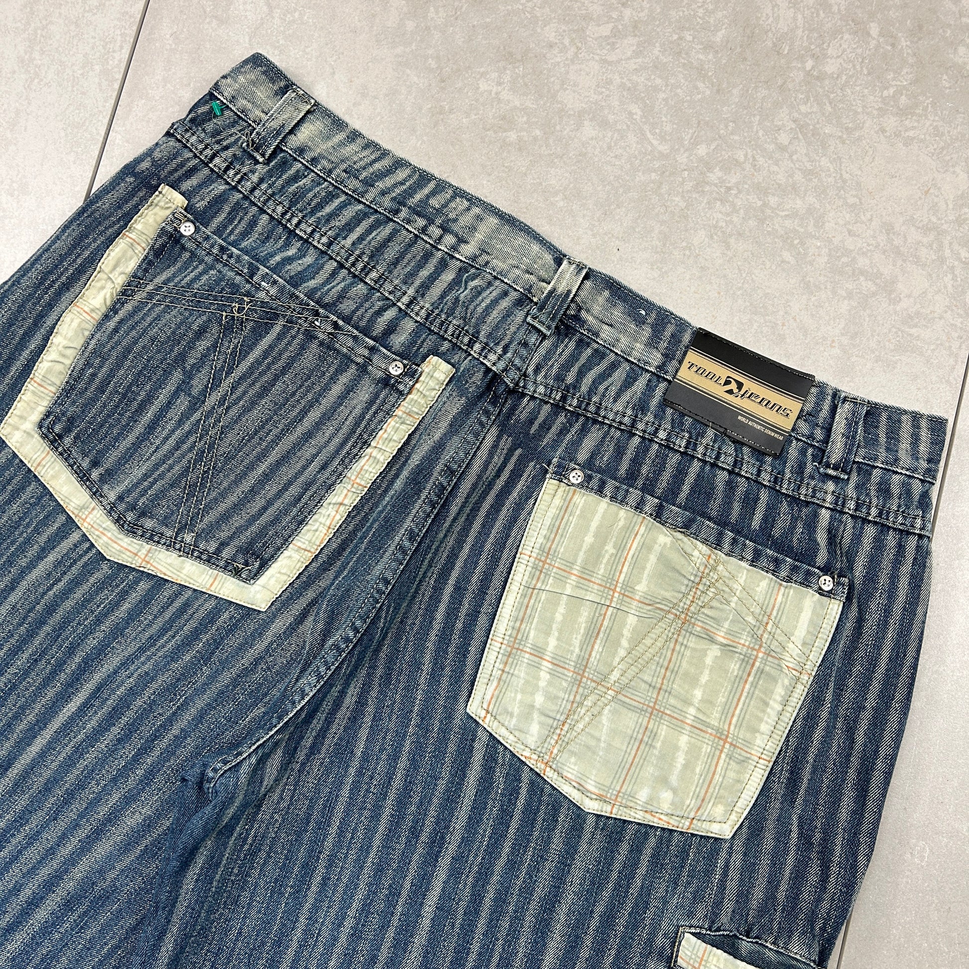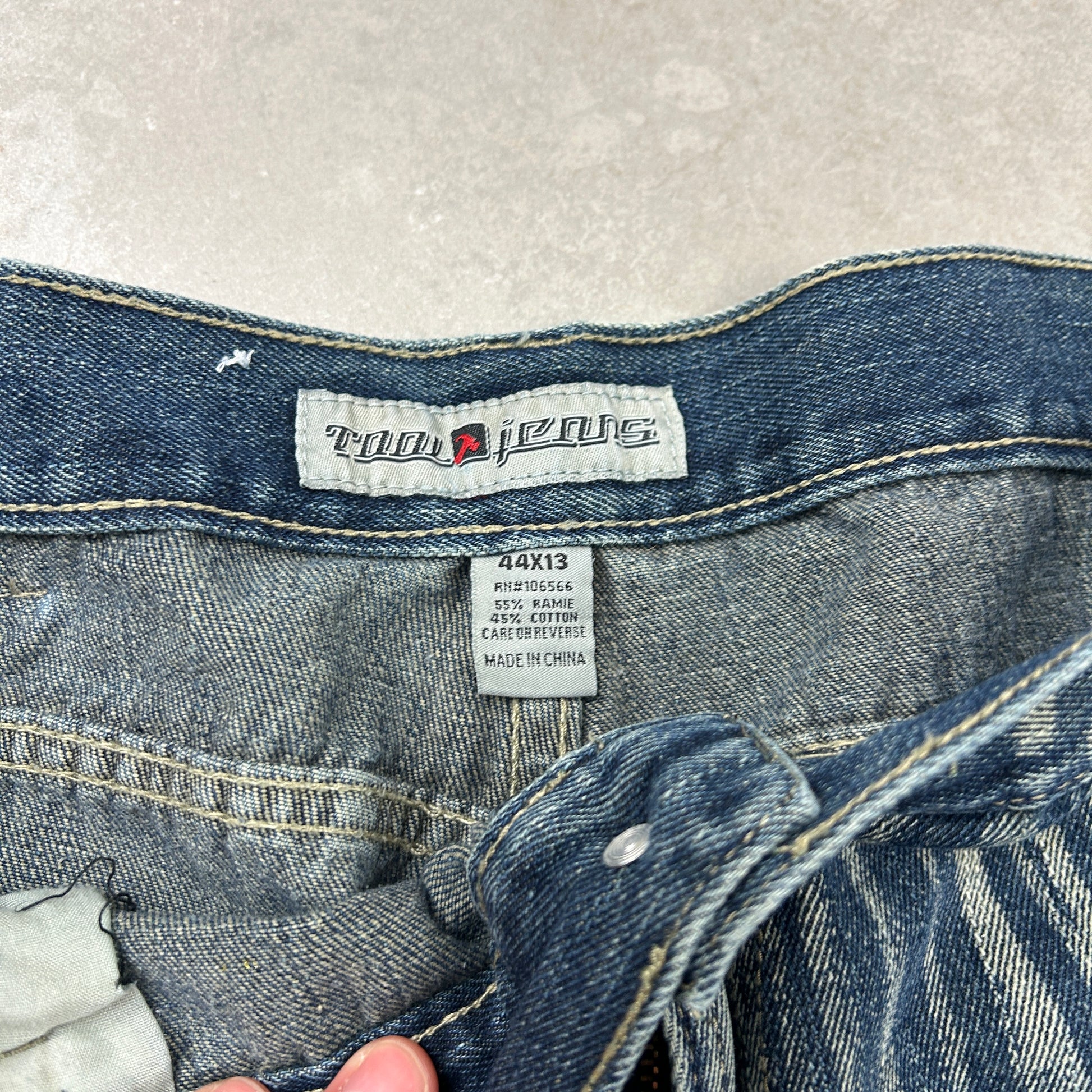 Contrast stitch true religion JNCO Coogi Southpole akademics Fubu skate rocawear embroidered denim jeans jorts skatewear surfwear carpenter cargo japanese denim