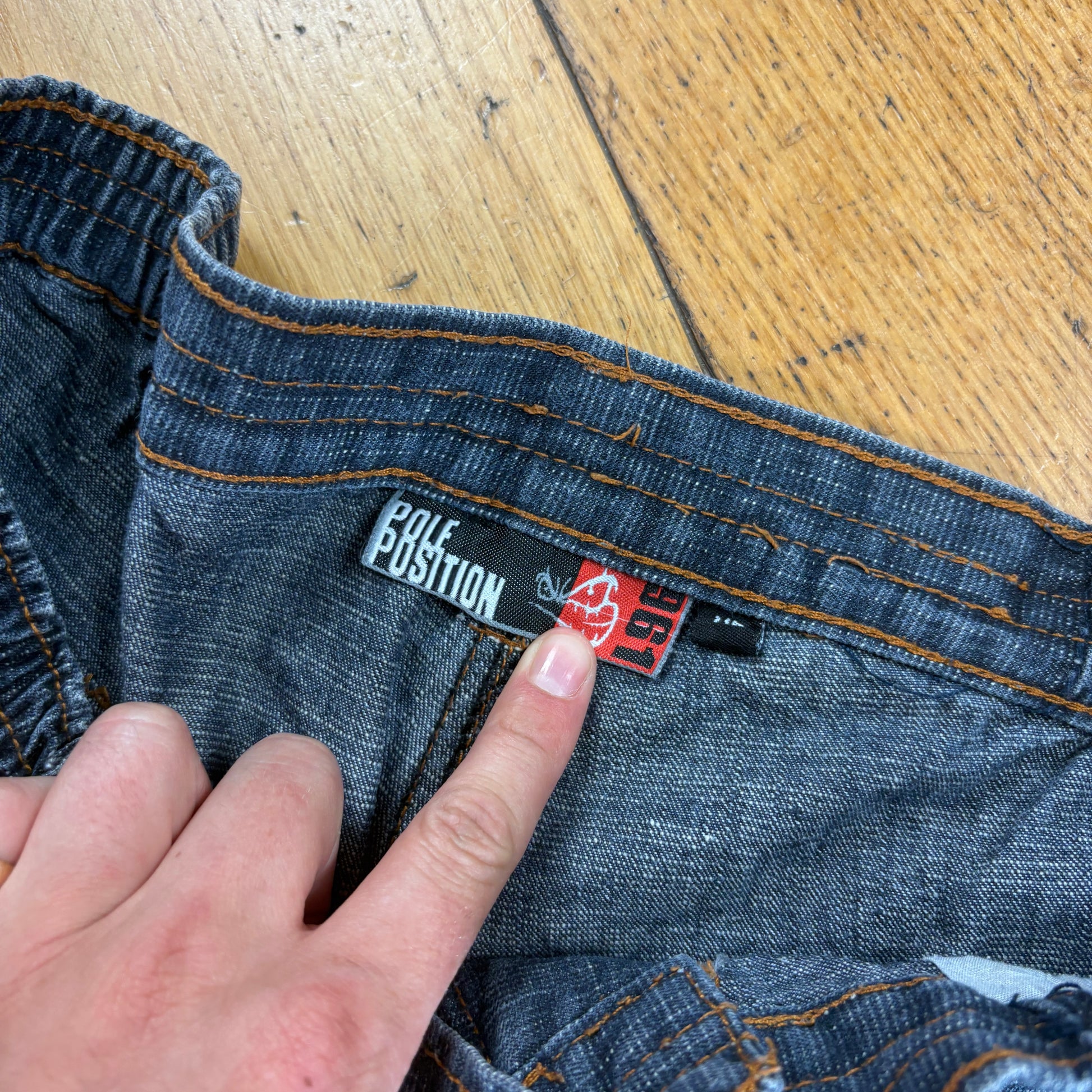 Vintage Pole Position Embroidered Hip Hop Blue Baggy Shorts Jorts - 32