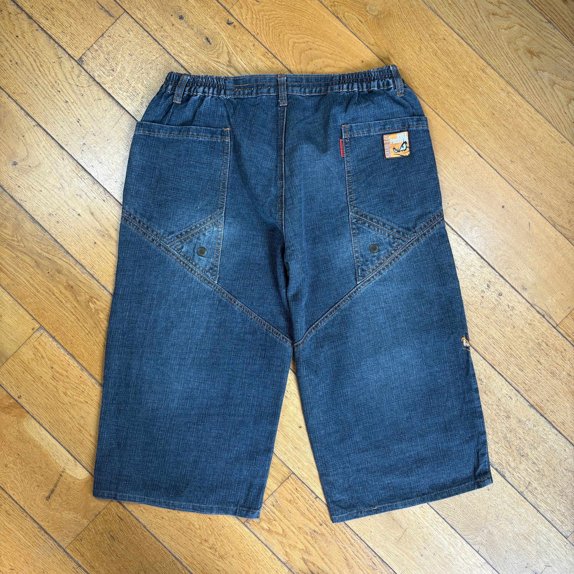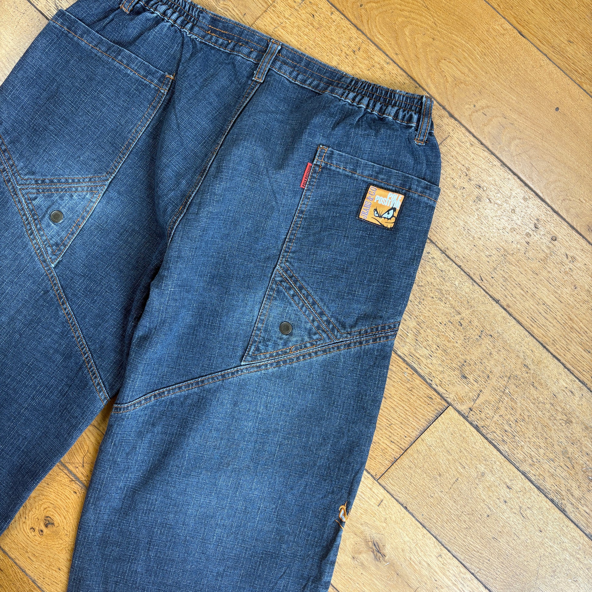 Contrast stitch true religion JNCO Coogi Southpole akademics Fubu skate rocawear embroidered denim jeans jorts skatewear surfwear carpenter cargo japanese denim