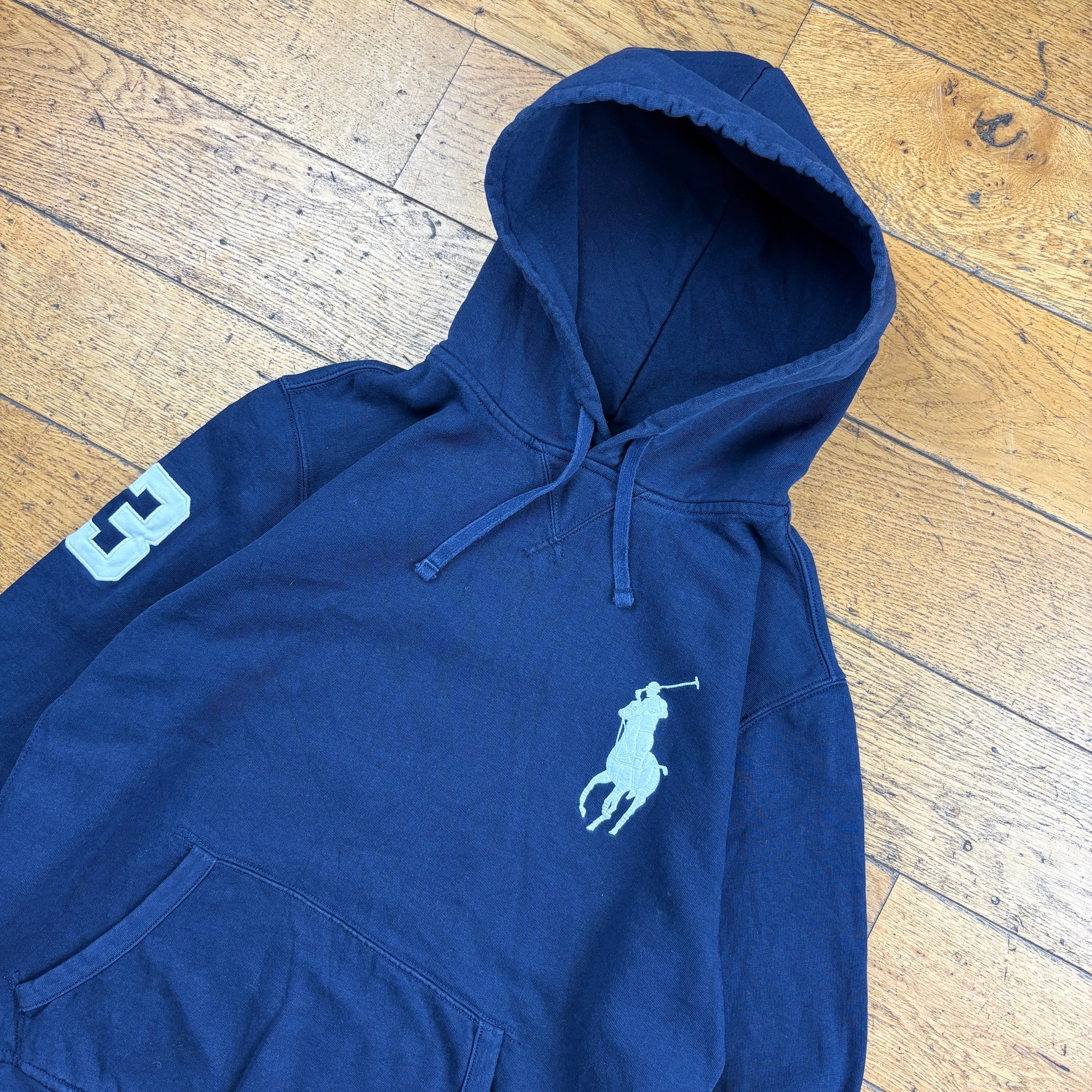 Vintage Ralph Lauren Big Pony Navy Embroidered Hoodie Sweatshirt - M