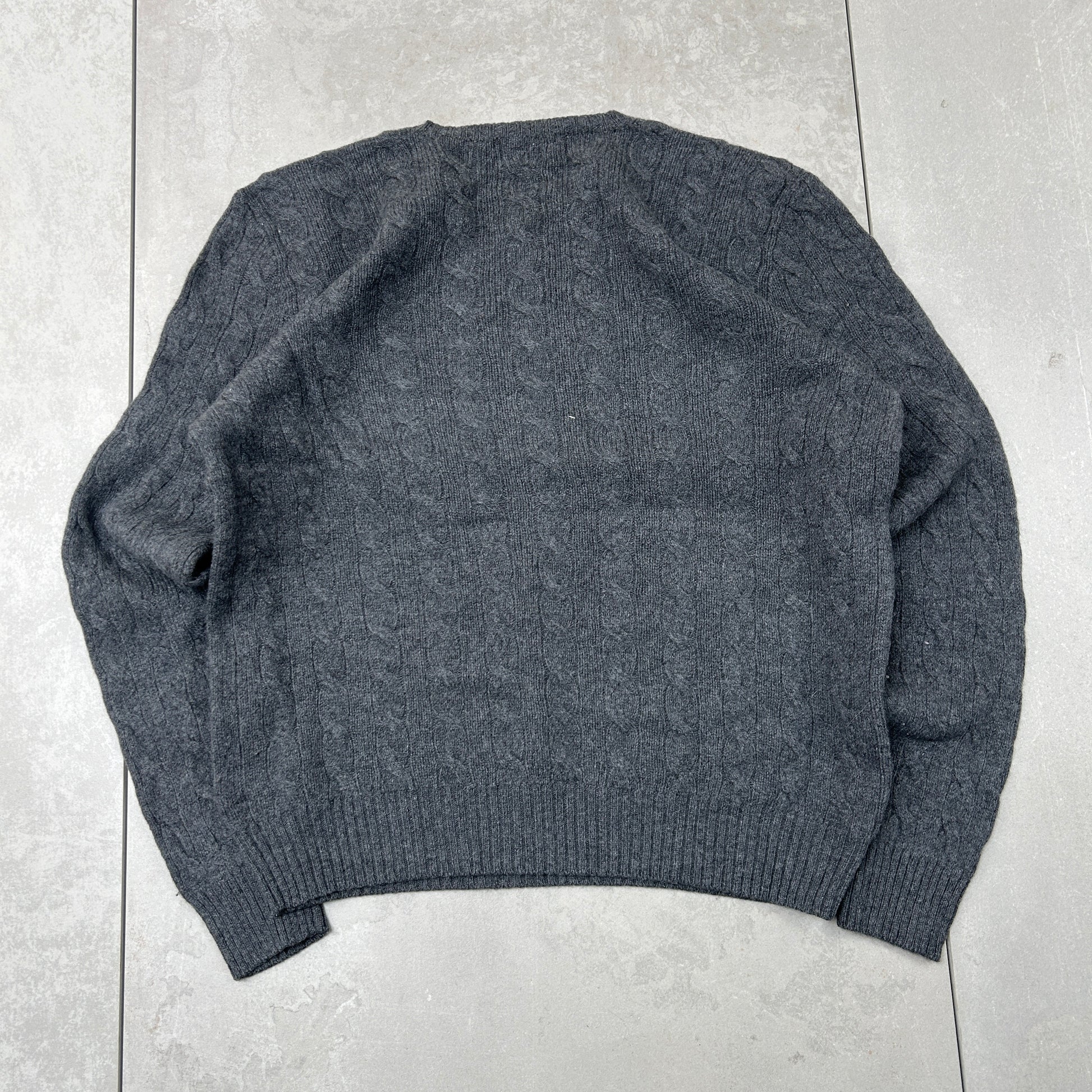 Vintage Ralph Lauren Cable Grey Knit Jumper - L
