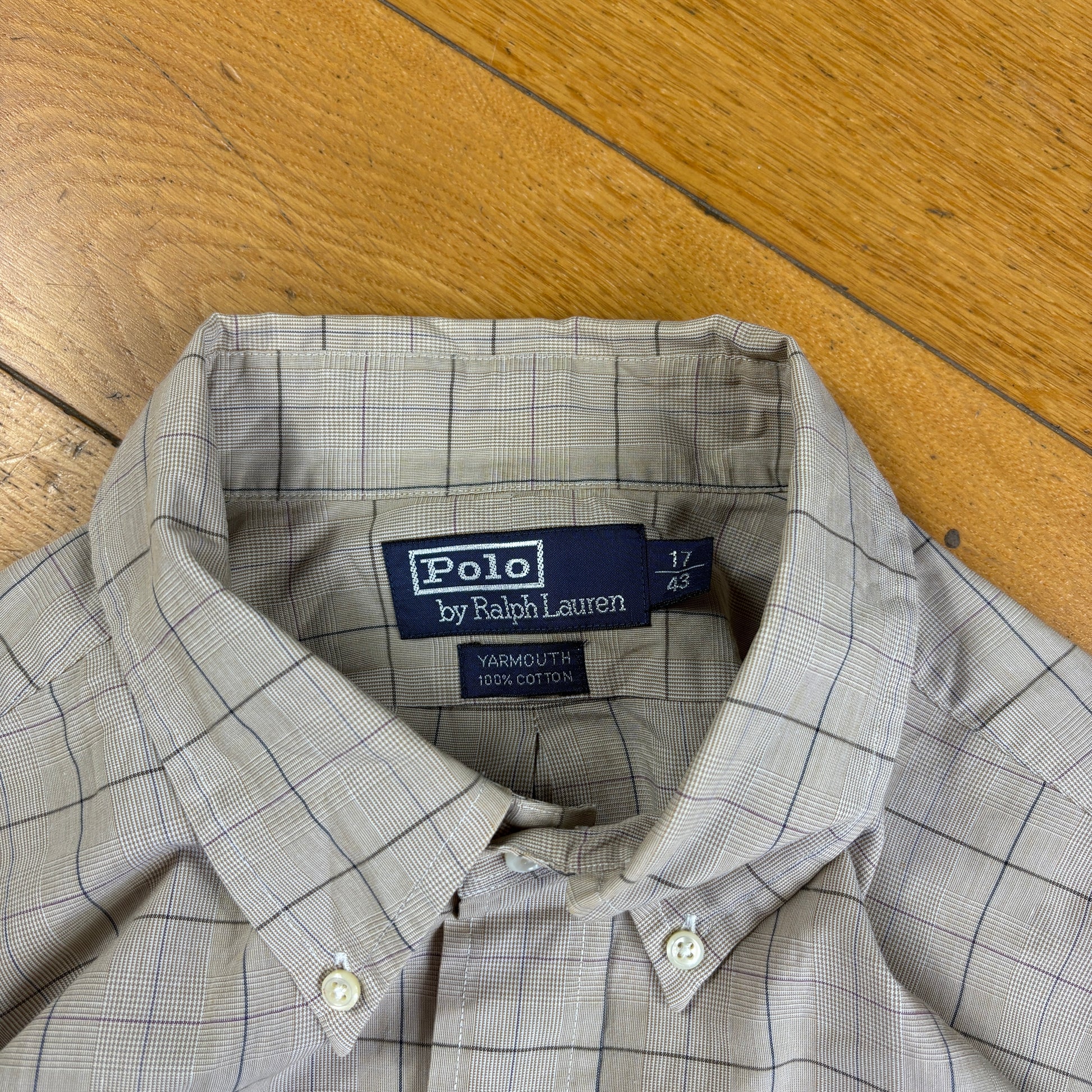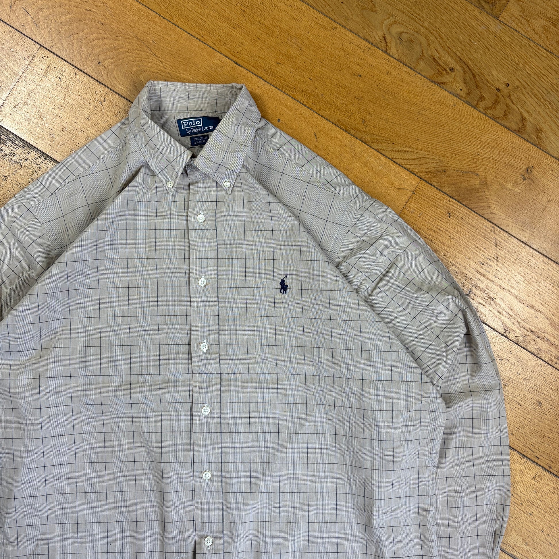 Vintage Ralph Lauren Cream Check Embroidered Shirt - XXL