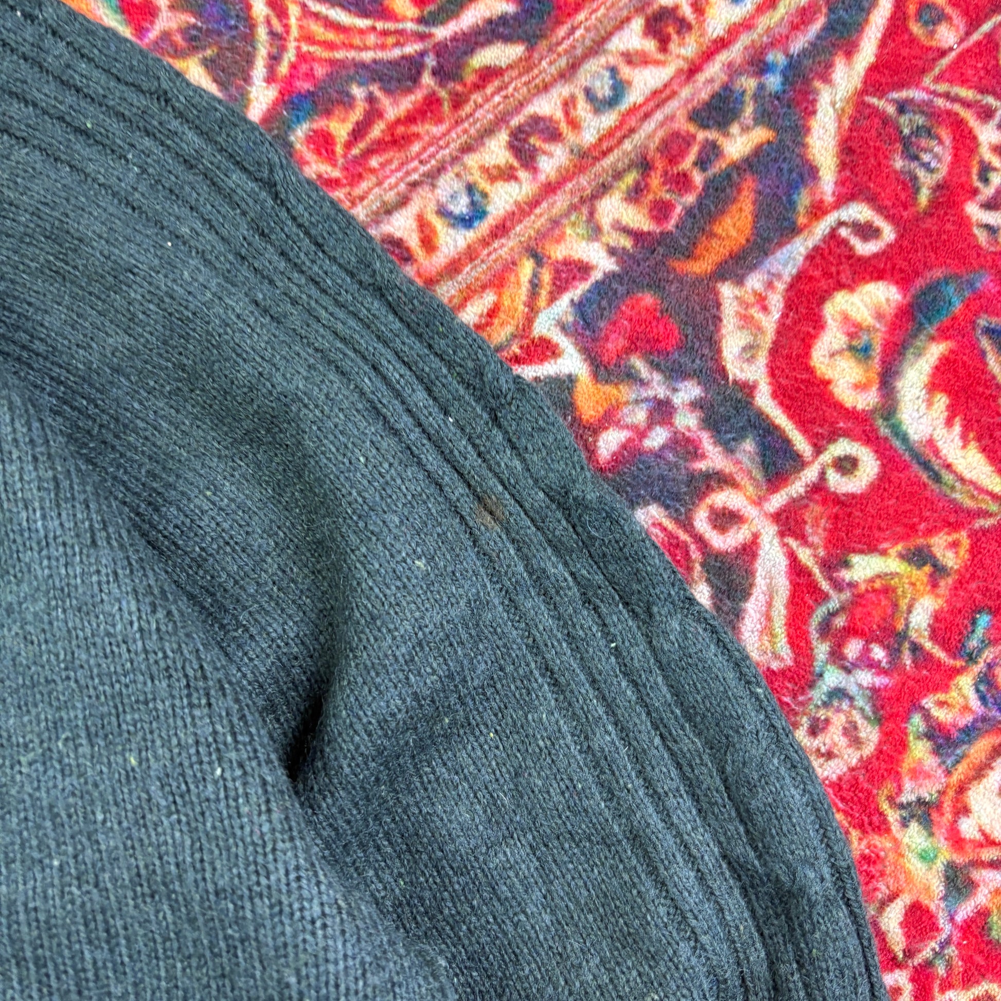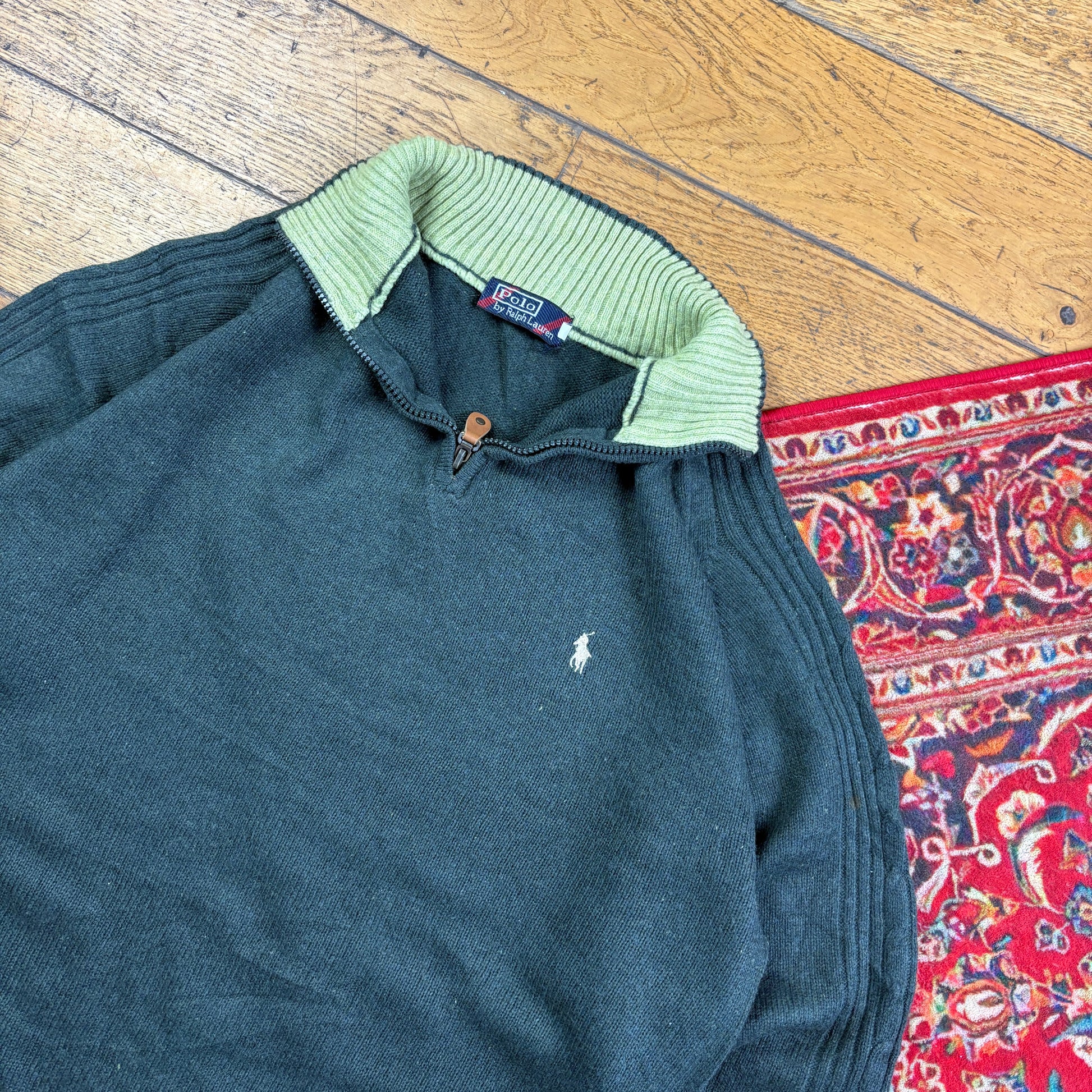 Vintage Ralph Lauren Green Wool Quarter Zip Chunky Knit Jumper - L