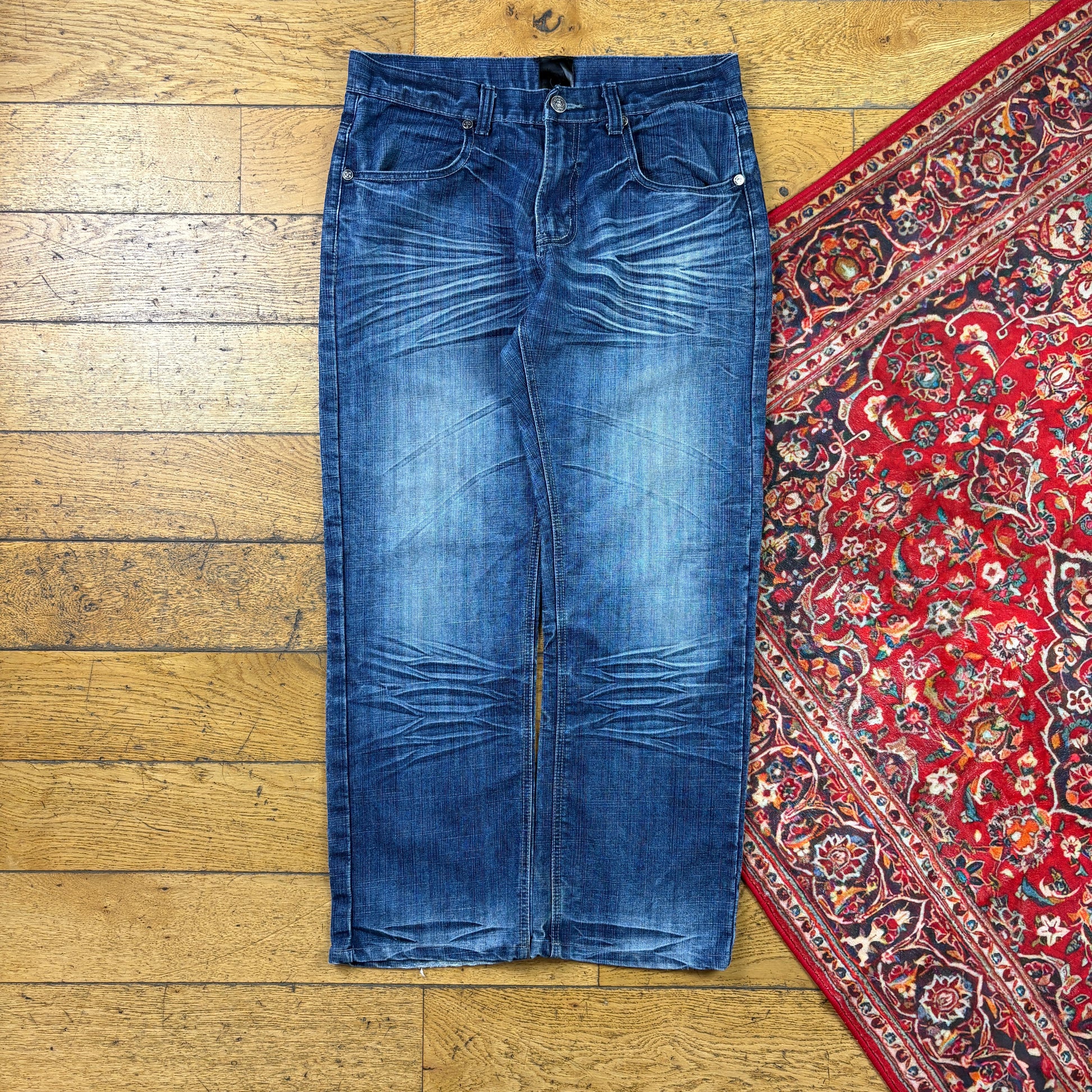 Vintage Raw Blue Embroidered Y2K Hip Hop Baggy Jeans - 36