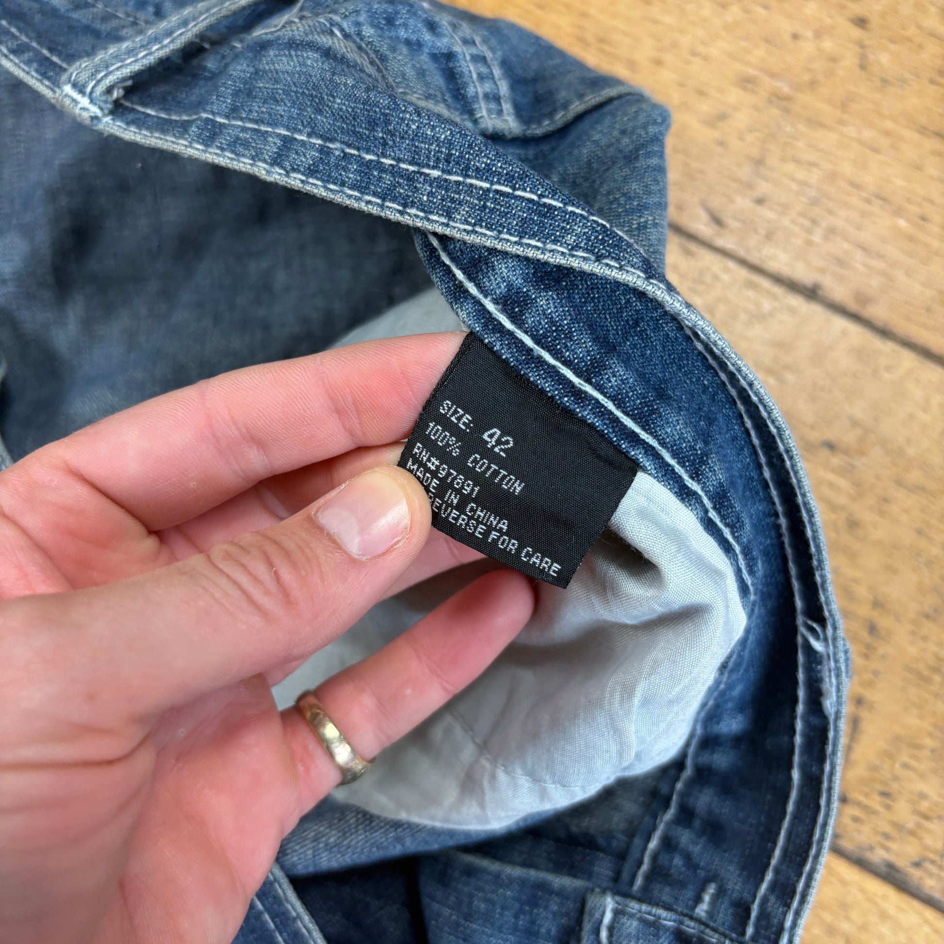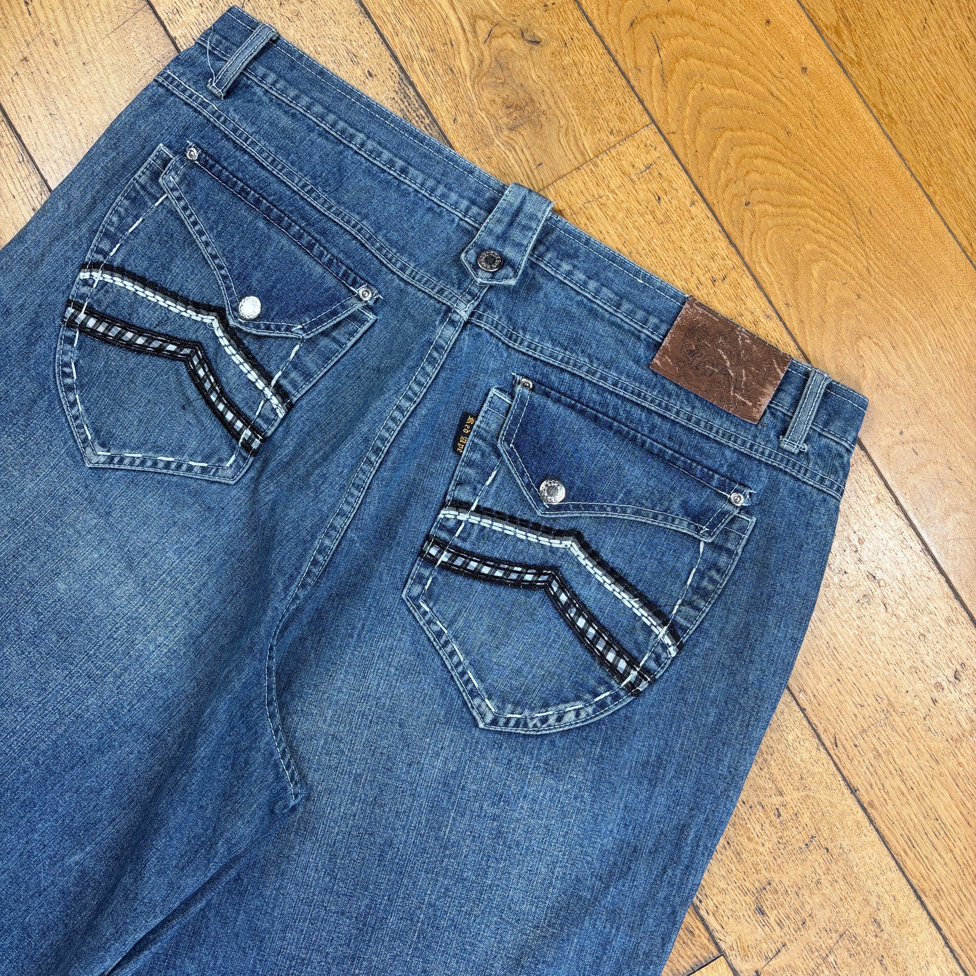 Contrast stitch true religion JNCO Coogi Southpole akademics Fubu skate rocawear embroidered denim jeans jorts skatewear surfwear carpenter cargo japanese denim