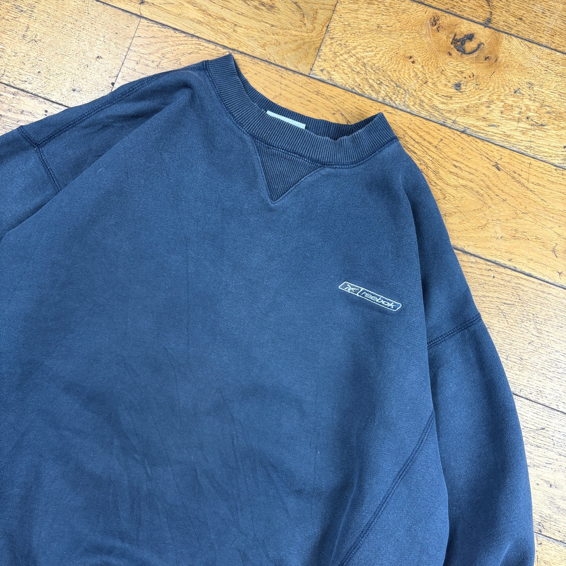 Vintage Reebok Grey Blue Embroidered Sweatshirt - XL