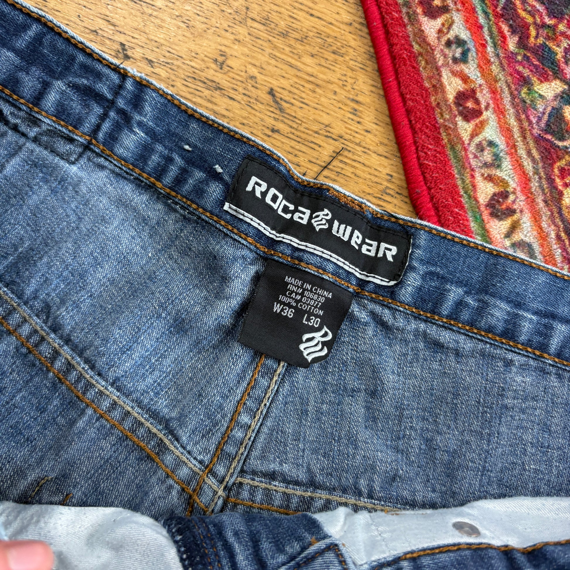 Vintage Rocawear Blue Embroidered Y2K Hip Hop Baggy Jeans - 36