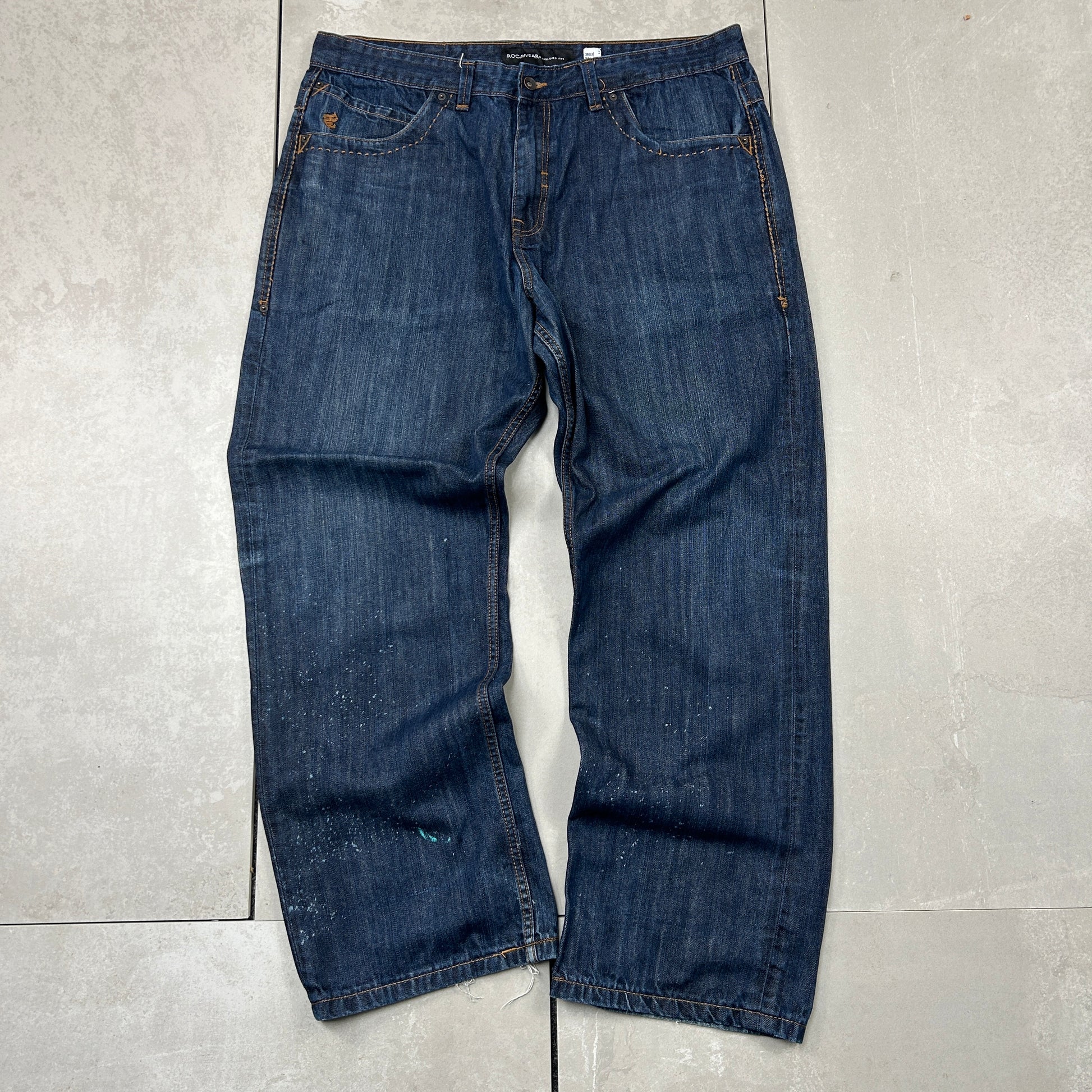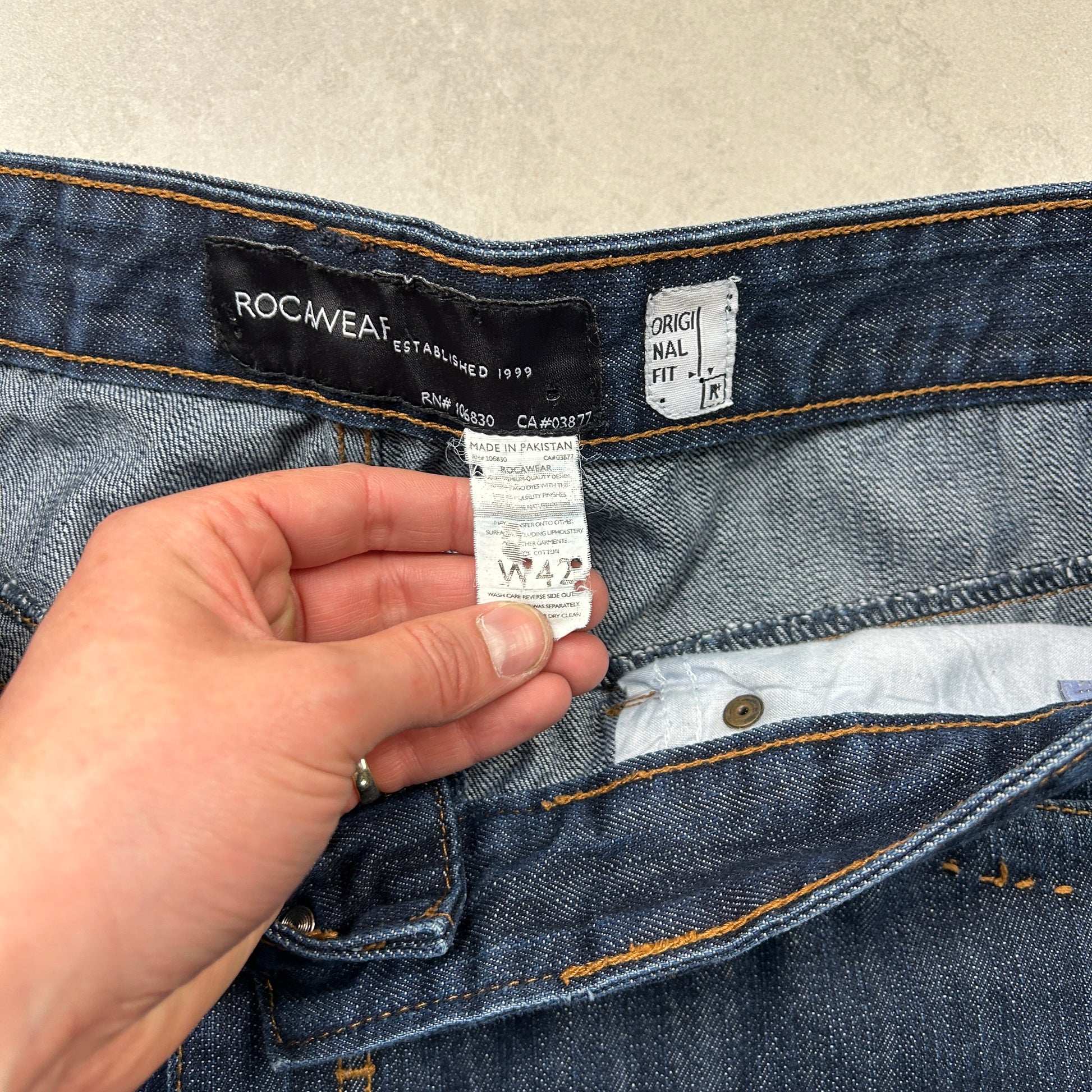 Vintage Rocawear Embroidered Hip Hop Baggy Blue Jeans - 42