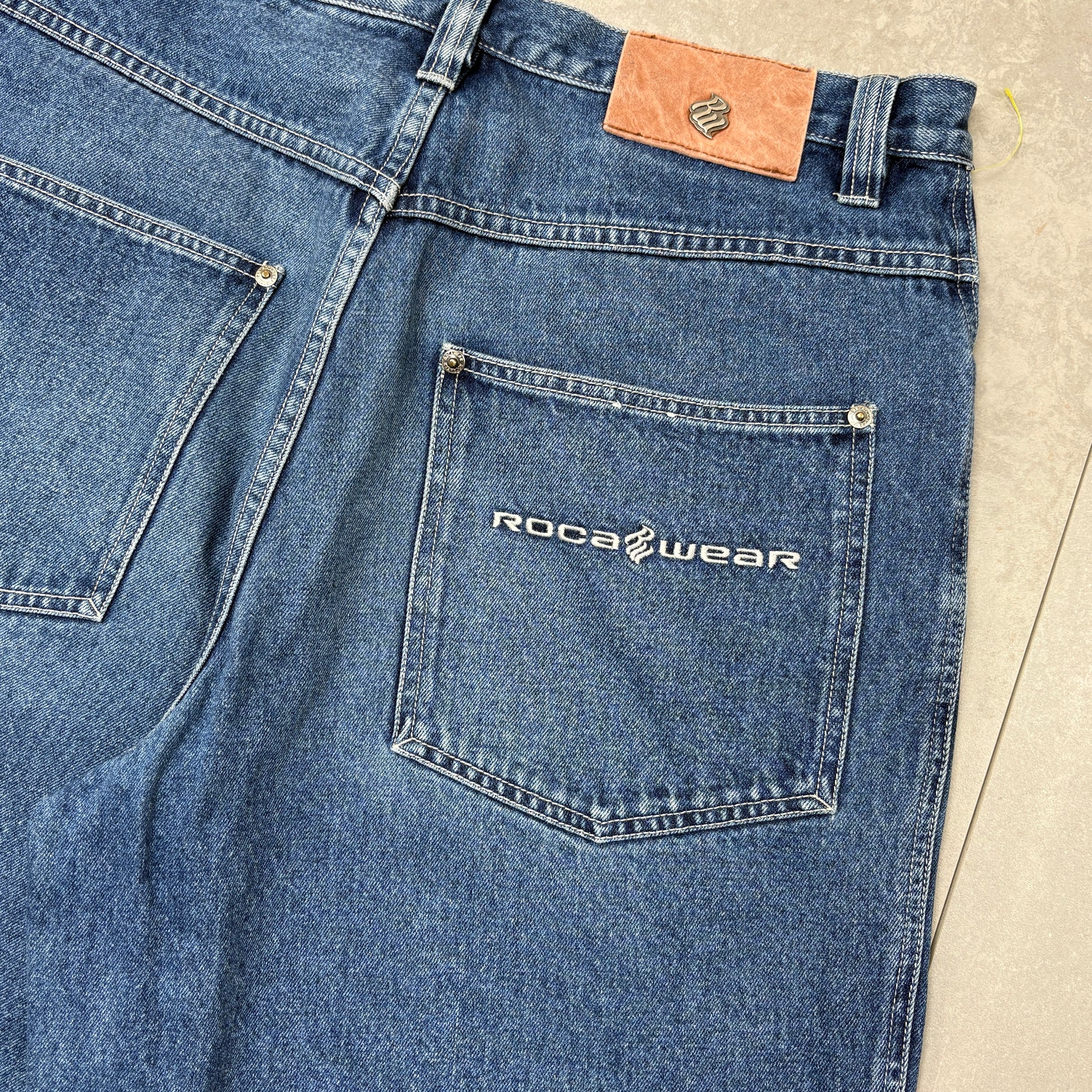 Vintage Rocawear Embroidered Hip Hop Baggy Blue Shorts Jorts - 36