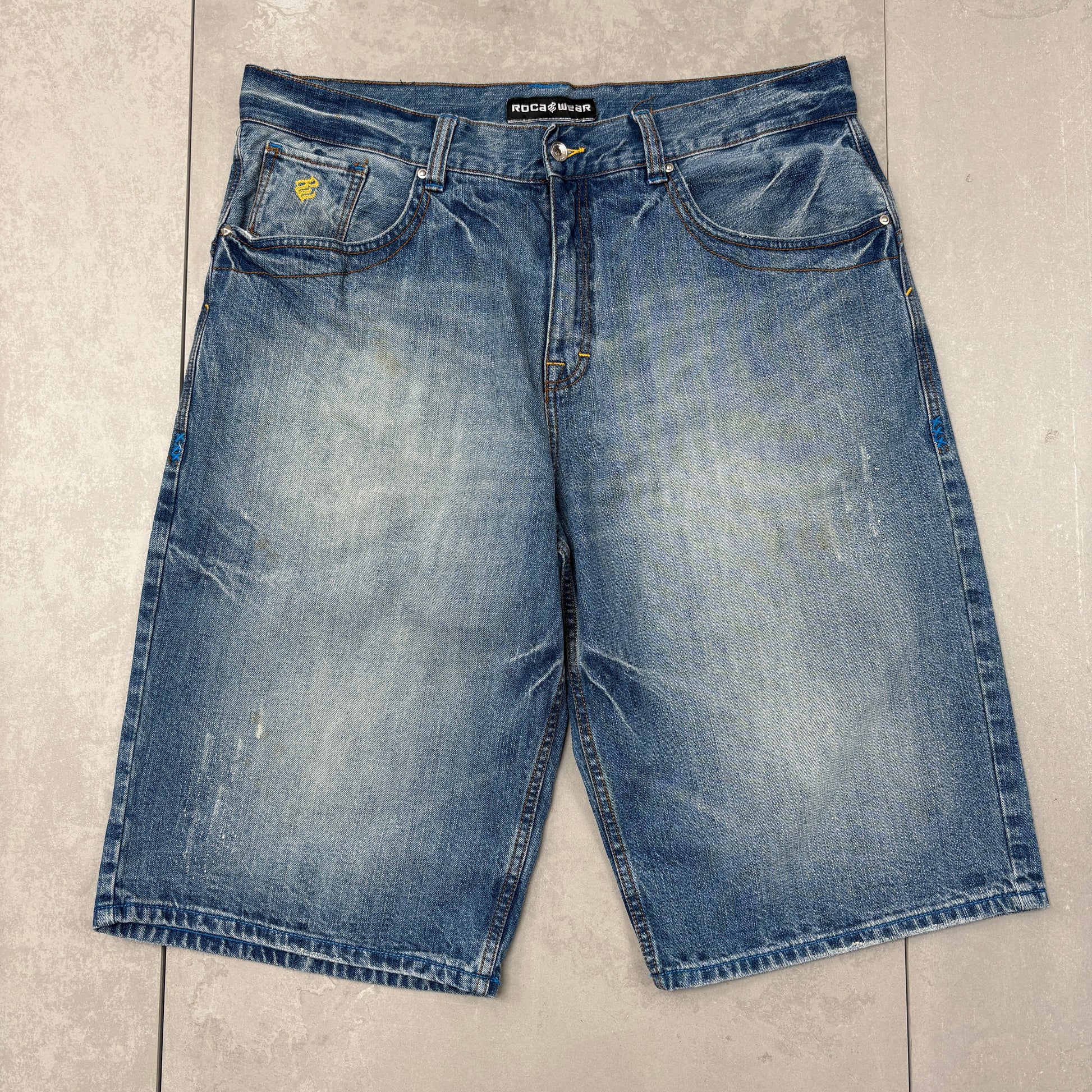 Vintage Rocawear Embroidered Hip Hop Baggy Blue Shorts Jorts - 42