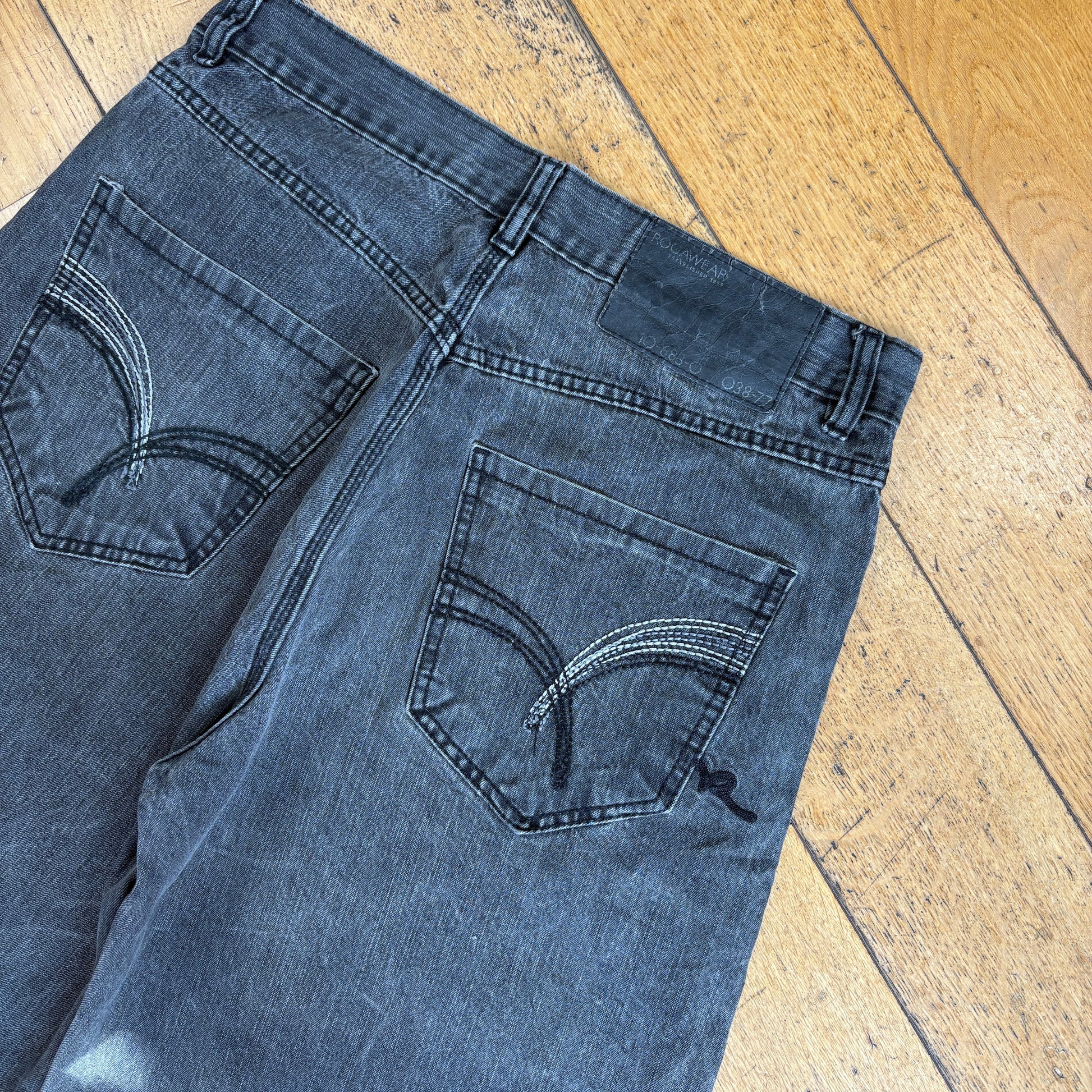 Contrast stitch true religion JNCO Coogi Southpole akademics Fubu skate rocawear embroidered denim jeans jorts skatewear surfwear carpenter cargo japanese denim