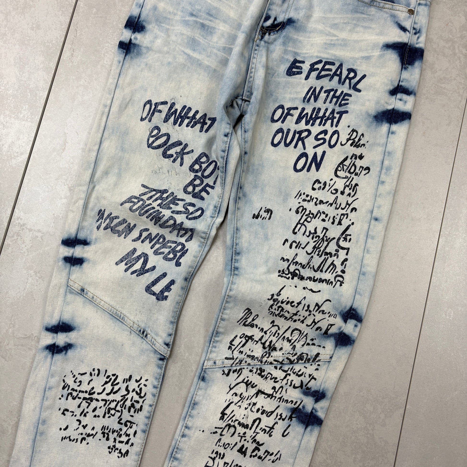 Vintage Rock Salt Blue Hip Hop Slim Jeans - 32