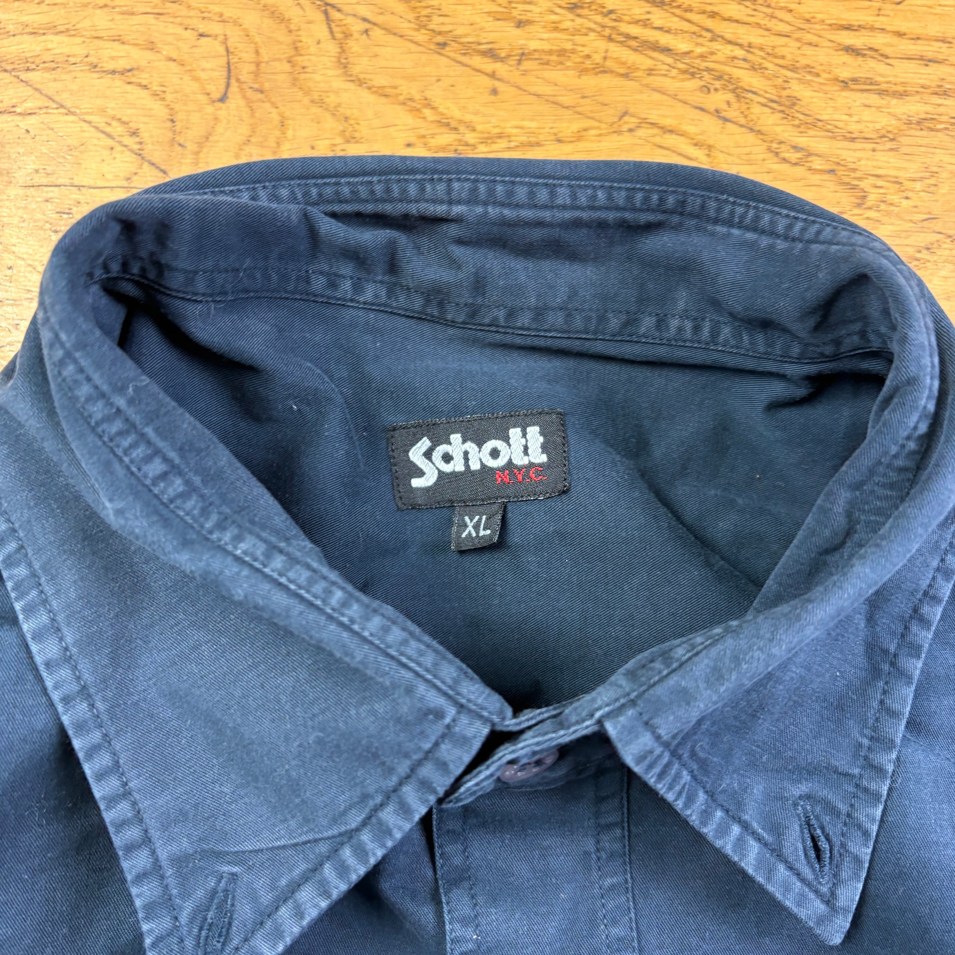 Vintage Schott NYC Navy Embroidered Shirt - L