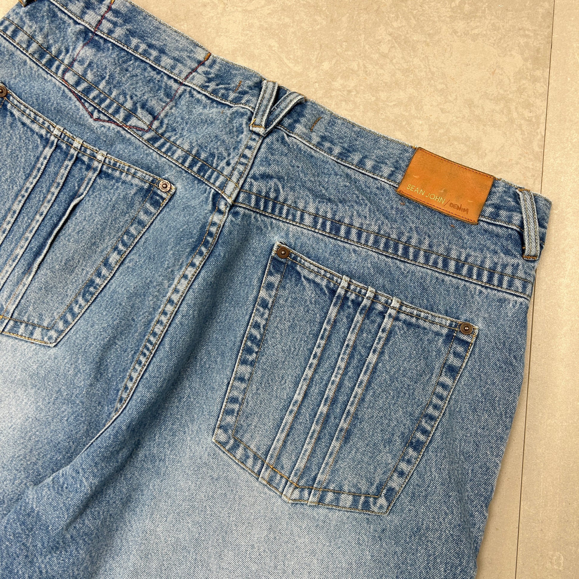 Vintage Sean John Embroidered Blue Hip Hop Baggy Shorts Jorts - 39