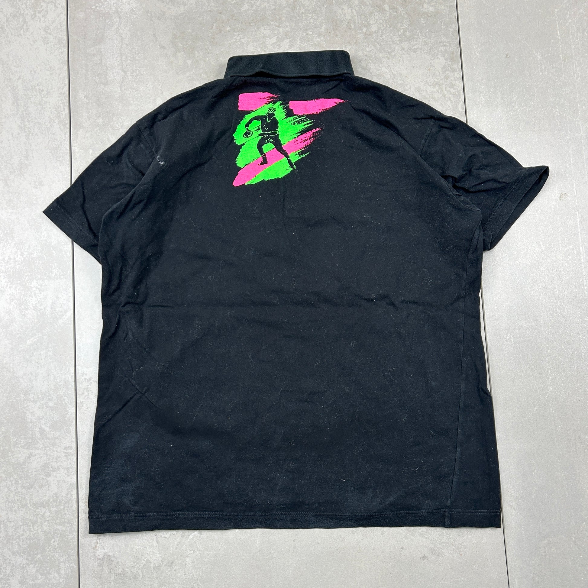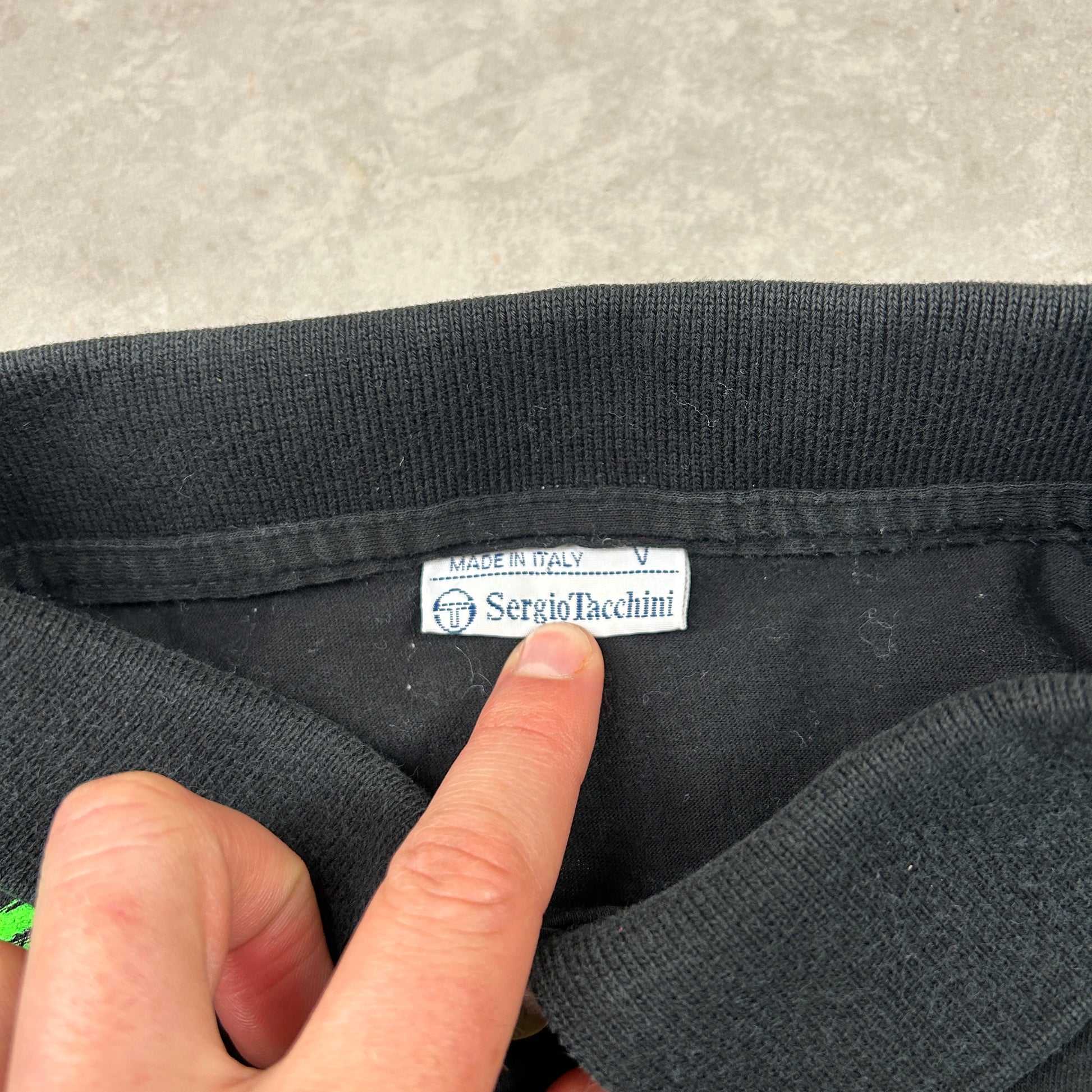 Vintage Sergio Tacchini Graphic Polo Tennis Black T-Shirt - M