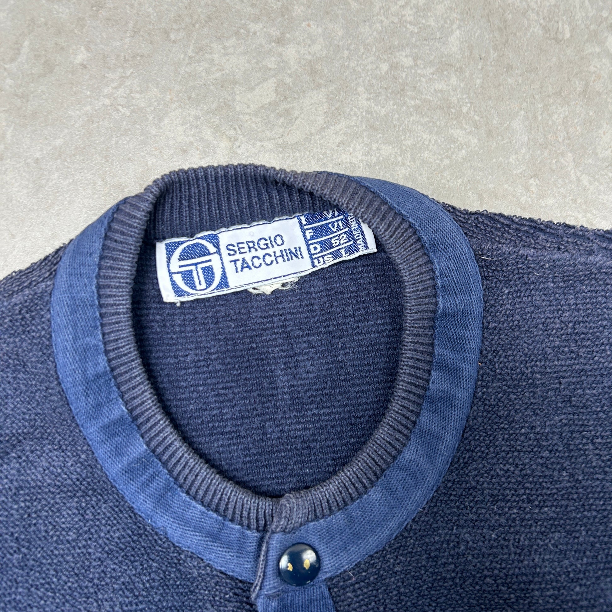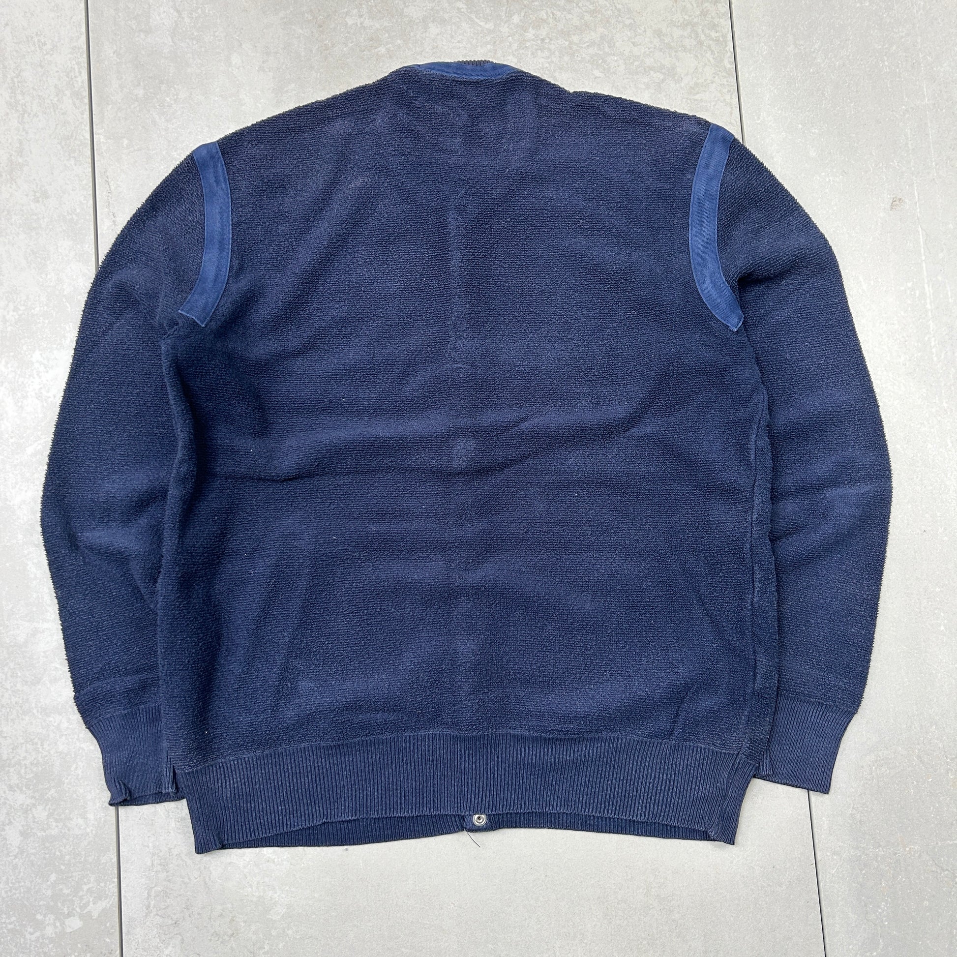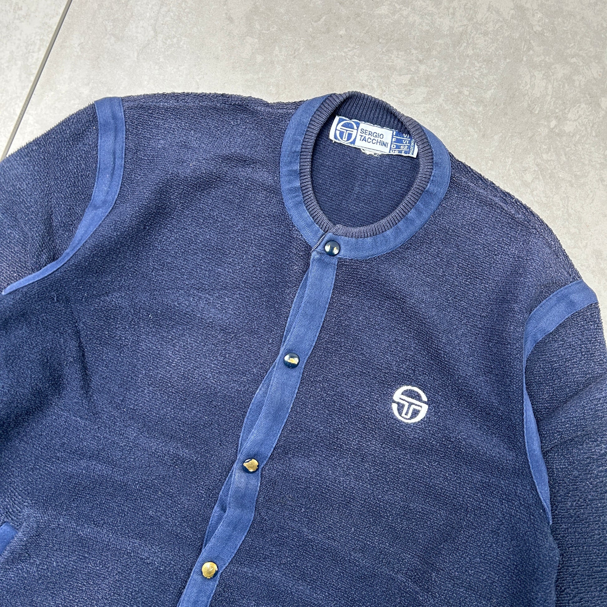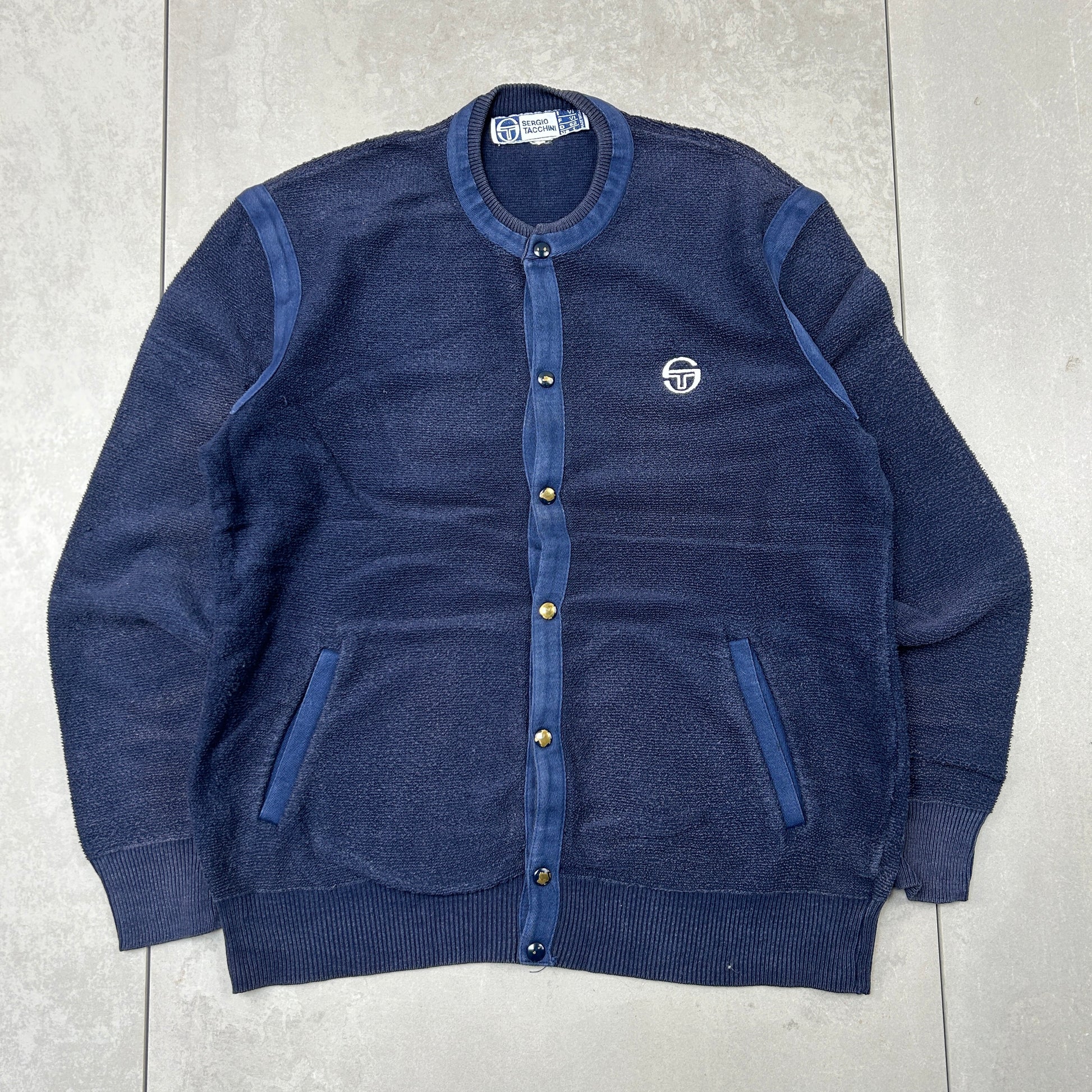 Vintage Sergio Tacchini Navy Embroiderd Cardigan Chunky Knit Jumper - M