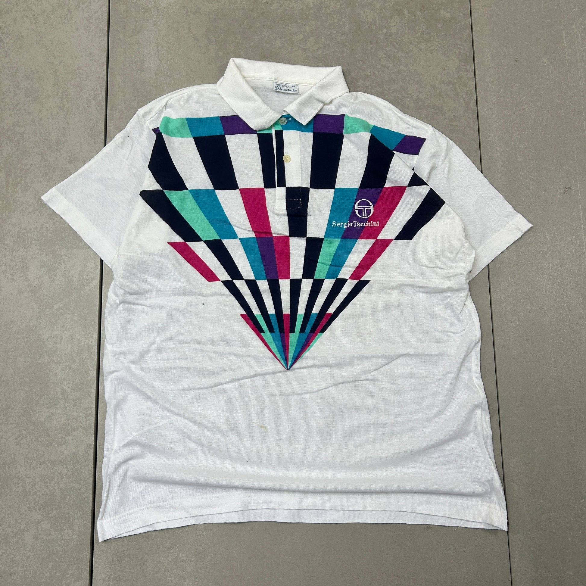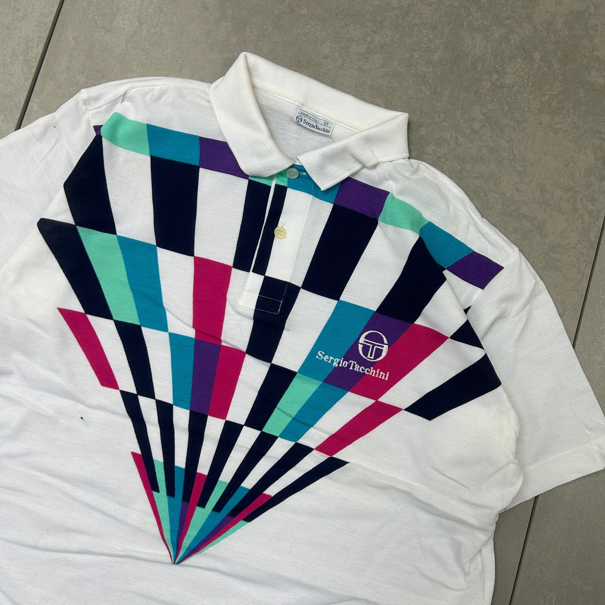 Vintage Sergio Tacchini White Embroidered Polo Shirt - L