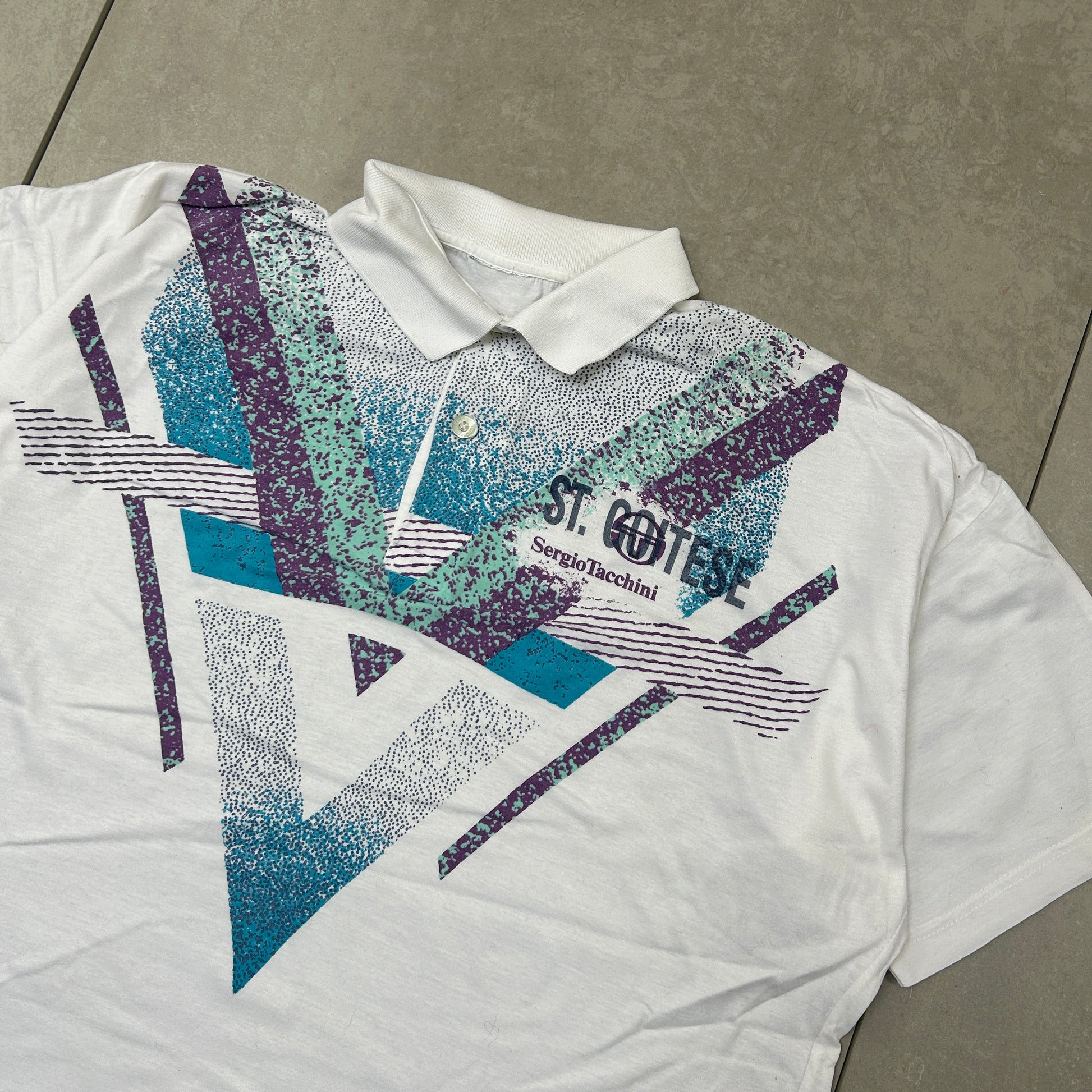 Vintage Sergio Tacchini White Embroidered Polo Shirt - XL